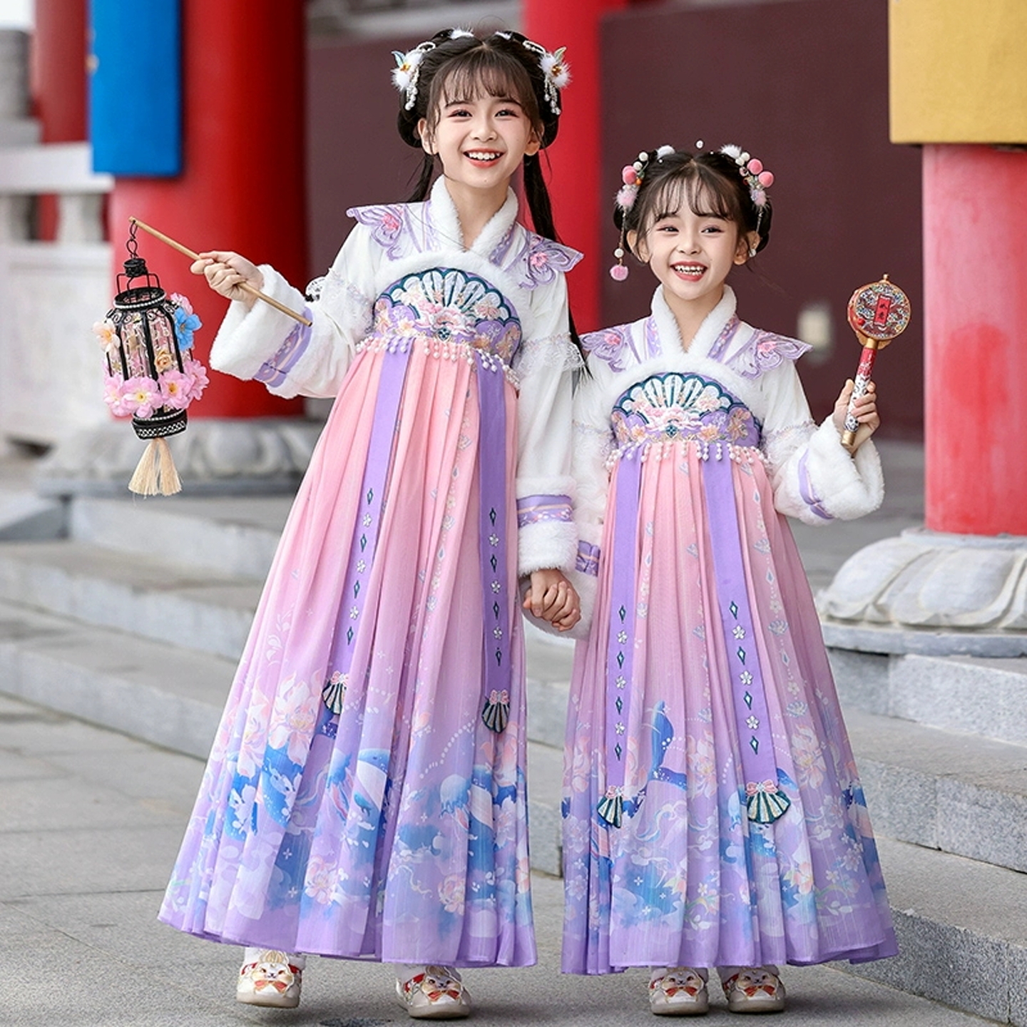 汉服女童秋冬款古装连衣裙2025新款女孩冬季加绒唐装儿童国风裙子