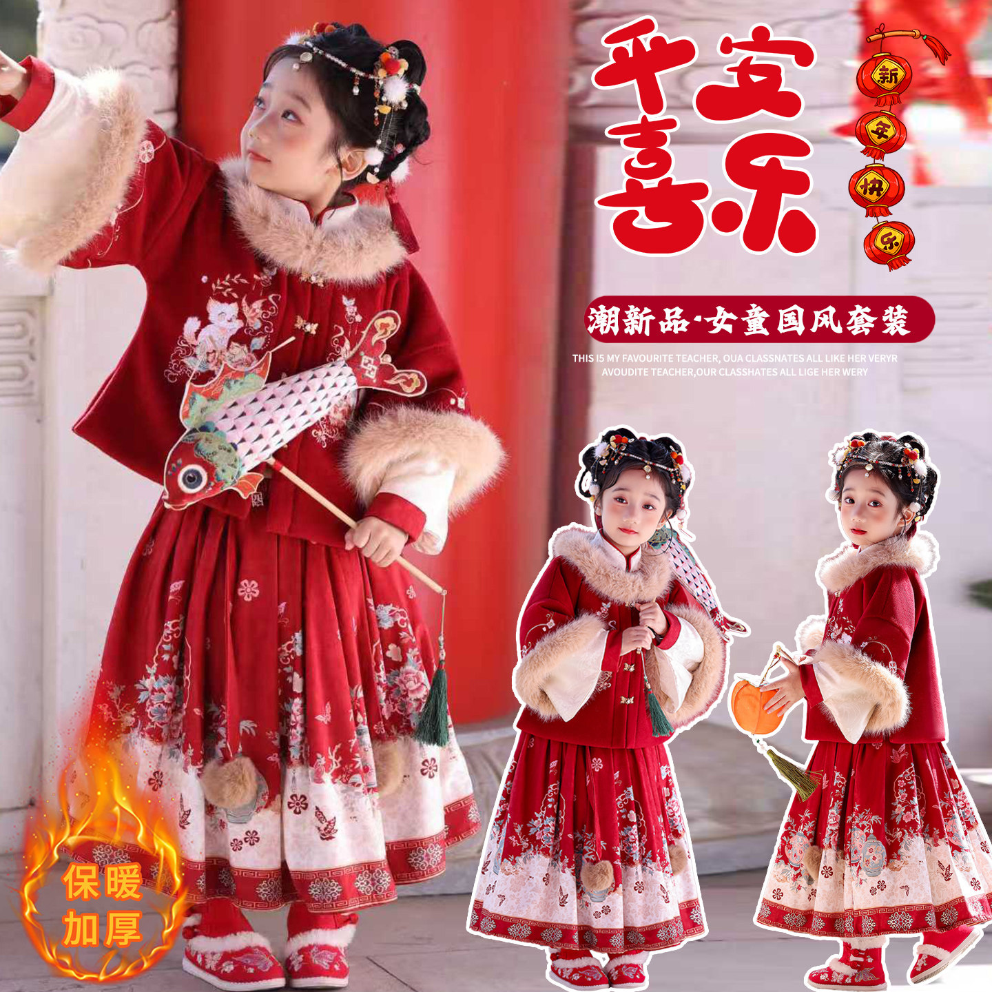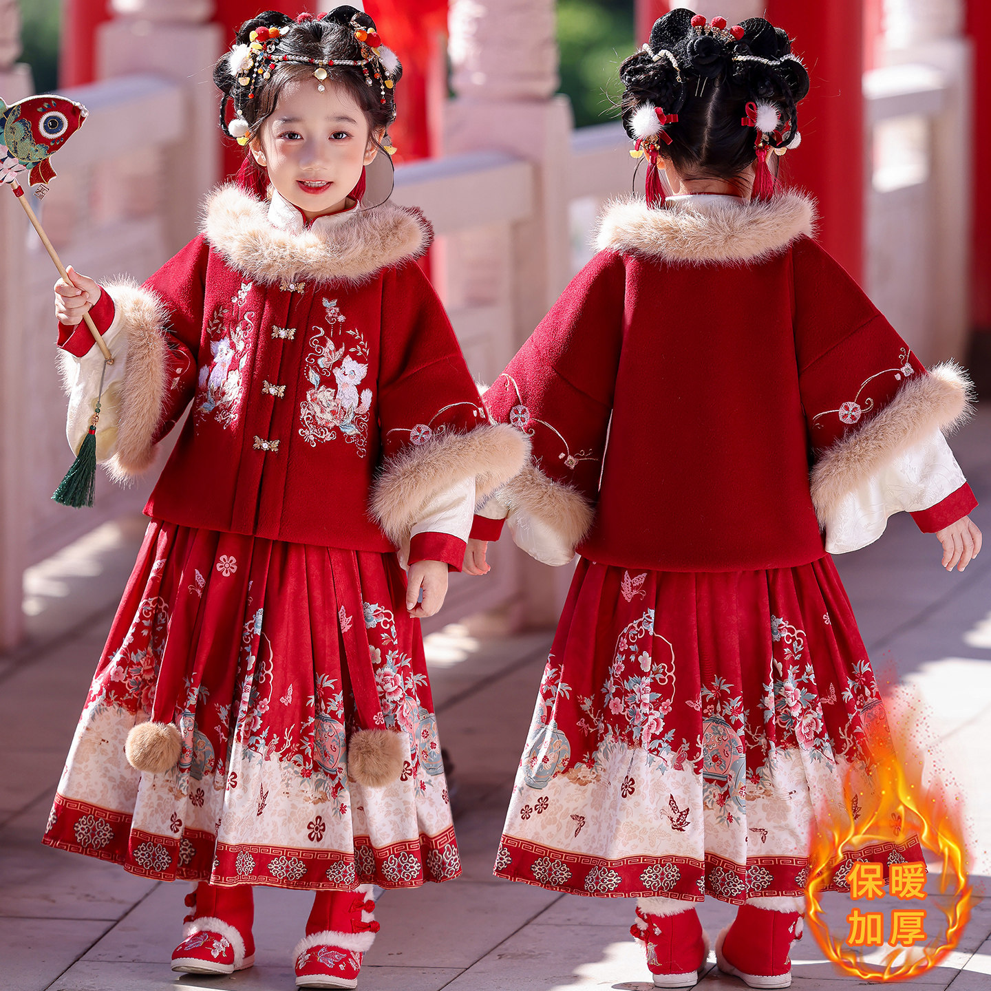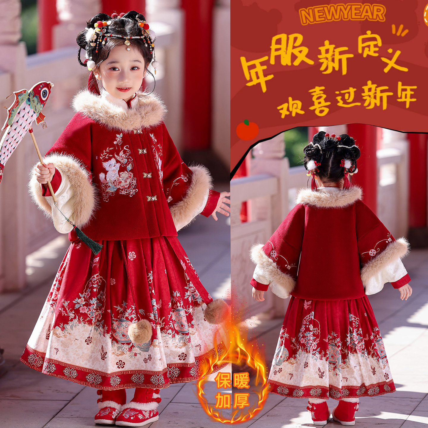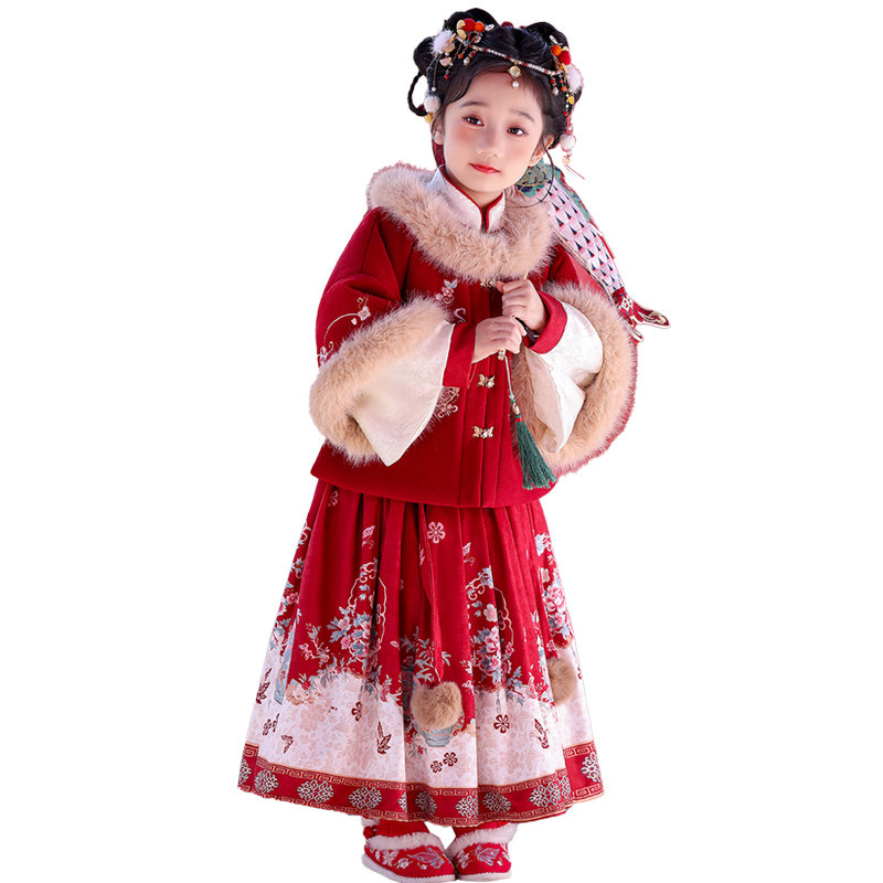 女童汉服套装2025年新款秋冬装中大童新中式国风拜年服套裙新年装