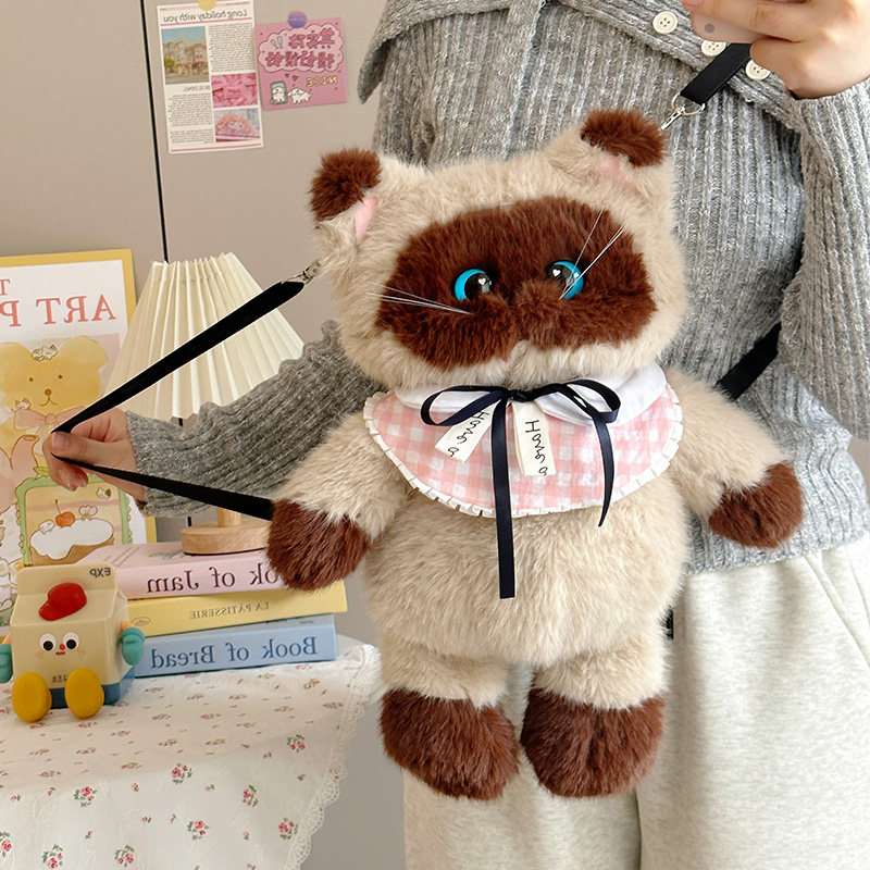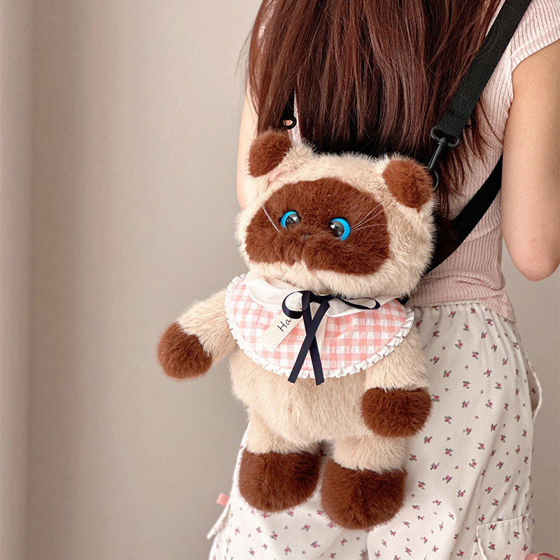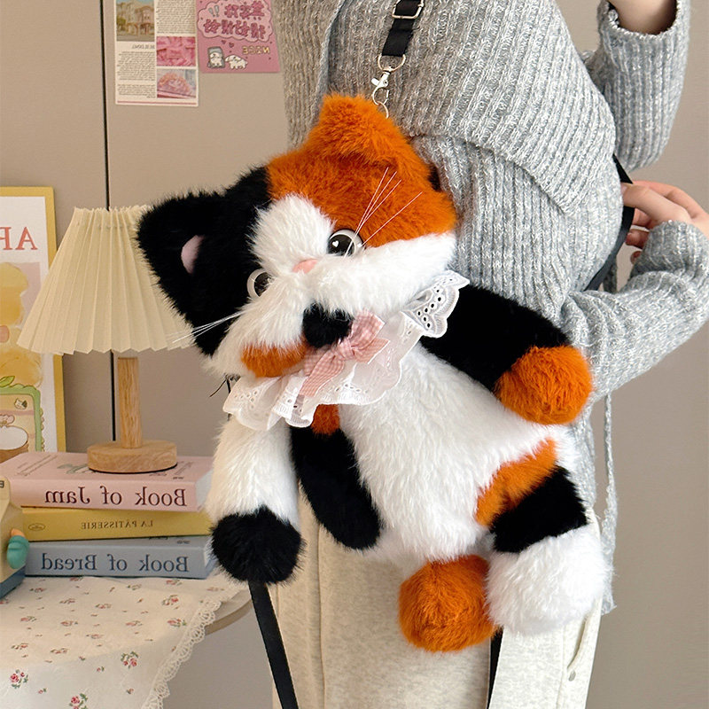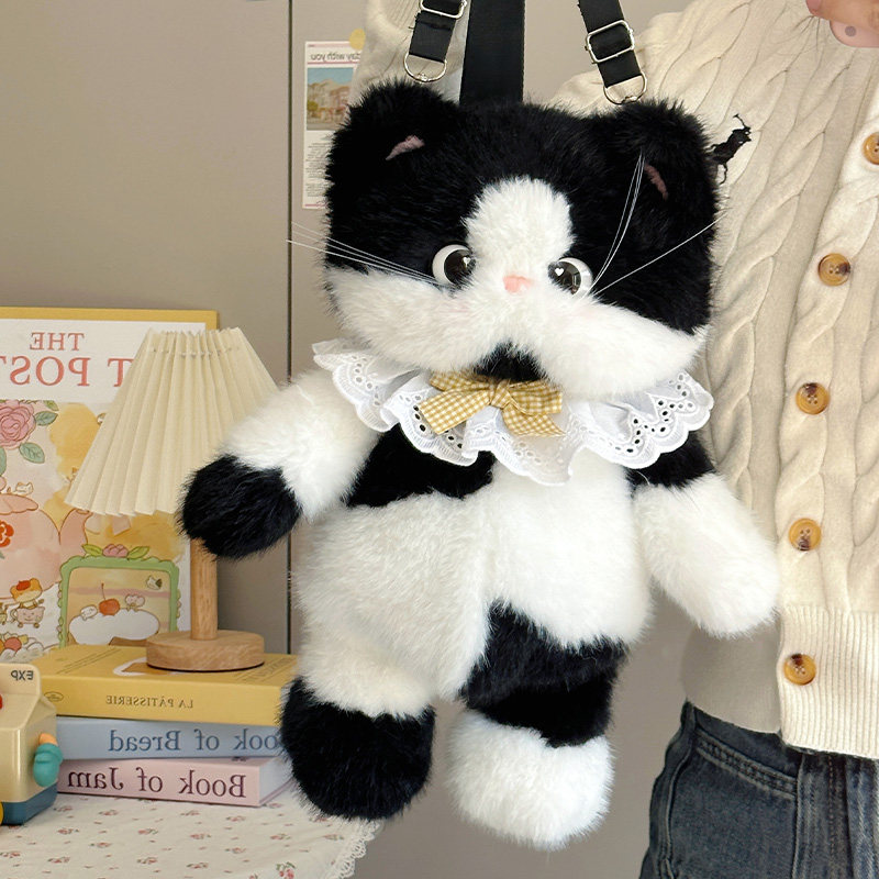 跑跑猫咪双肩包毛绒背包女生通勤书包实用高级感送女朋友生日礼物