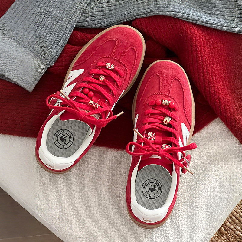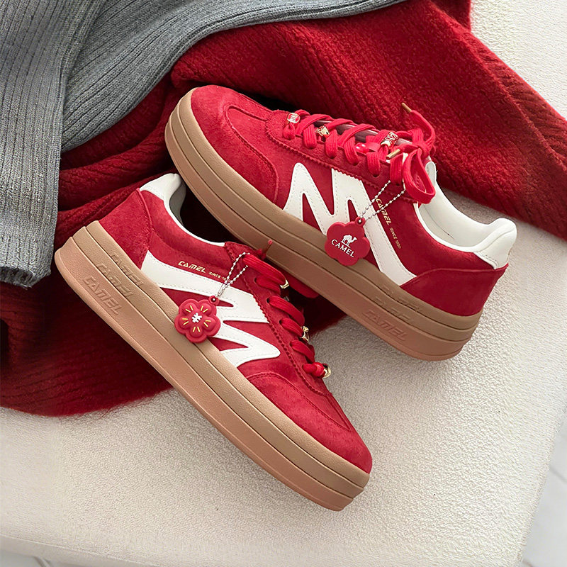 骆驼德训鞋女鞋2026春夏新款百搭复古休闲运动鞋红色厚底板鞋女款
