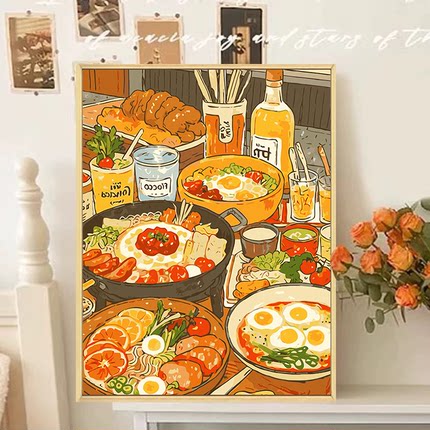 治愈系美食diy数字油画装饰画