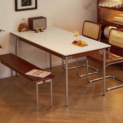 岩板餐桌中古风小户型长方形吃饭桌客厅家用2025新款复古餐厅桌子
