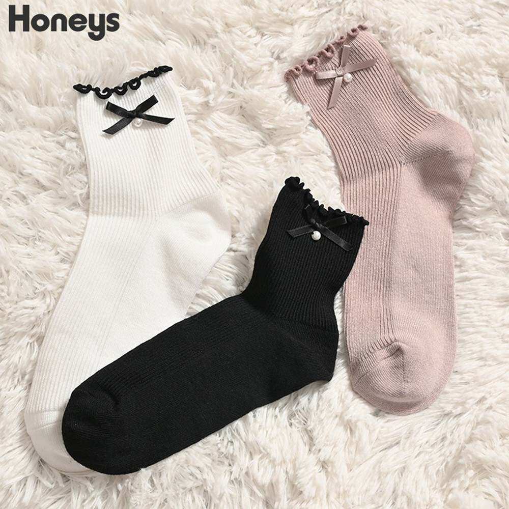 日本直邮Honeys 珍珠装饰短袜 女士款 适合全季节 [HN6029EW00691