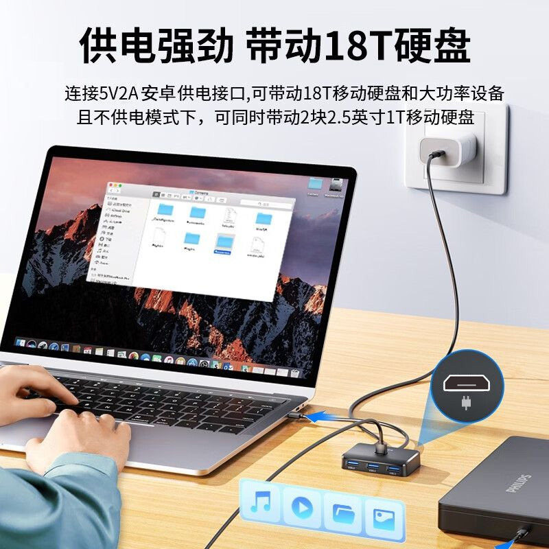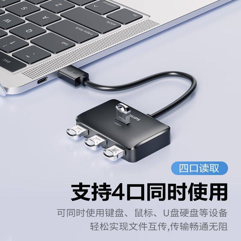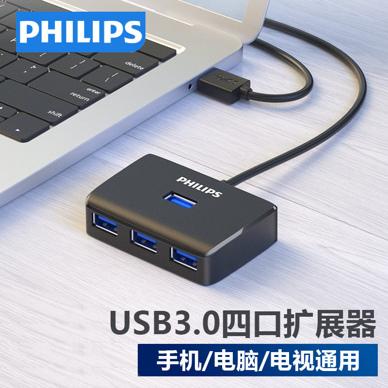 飞利浦usb分线器3.0高速拓展器一拖四笔记本电脑多孔转换器分线集线器转接头