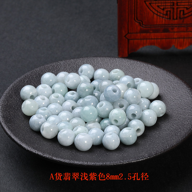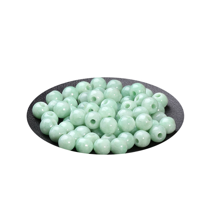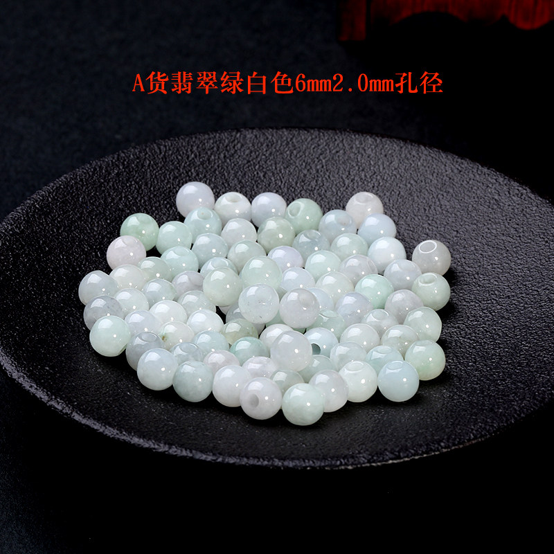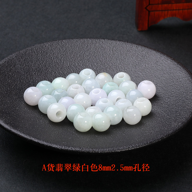 甄选大孔天然A货翡翠绿白豆绿色散珠子男女士手串diy手工项链配珠