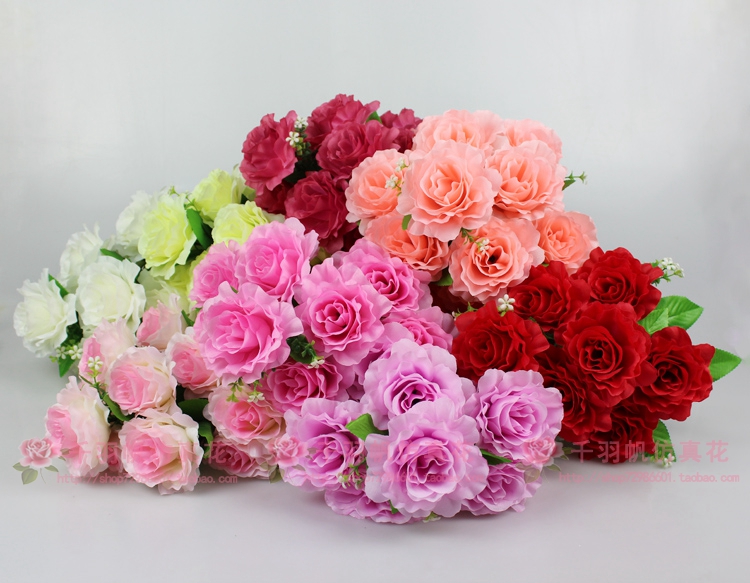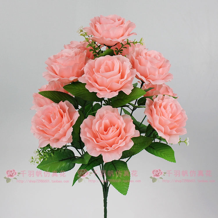 仿真花玫瑰花12头碎边玫花束客厅装饰摆件婚庆假花绢花塑料花干花