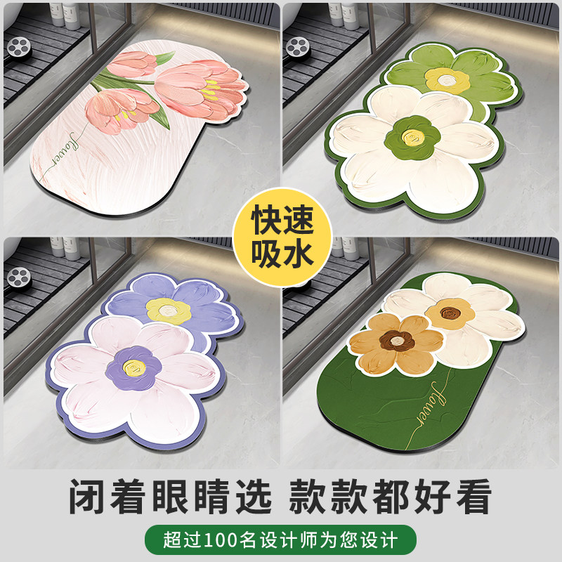 2025新款硅藻泥吸水垫子卫生间浴室地垫防滑入户门垫地毯厕所脚垫