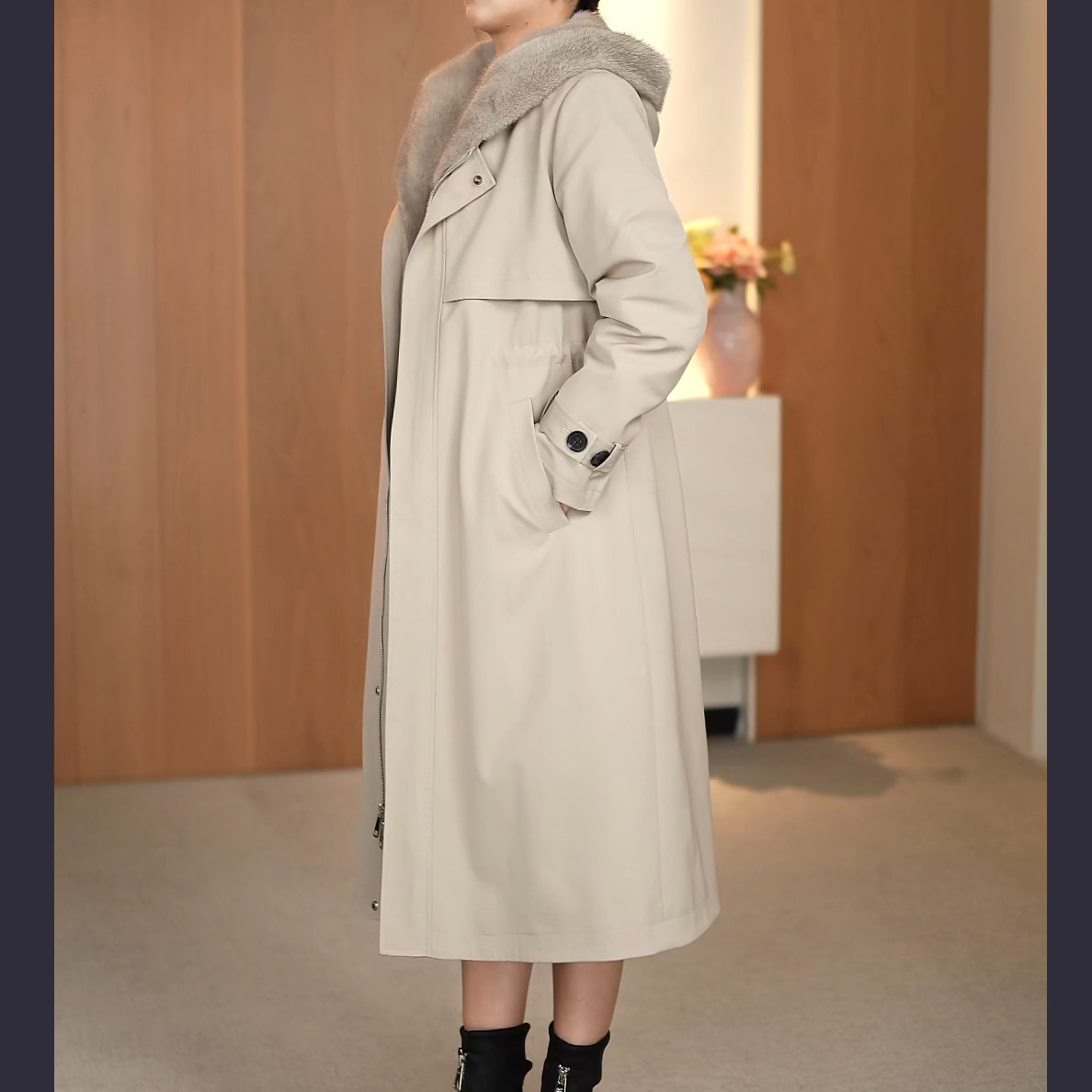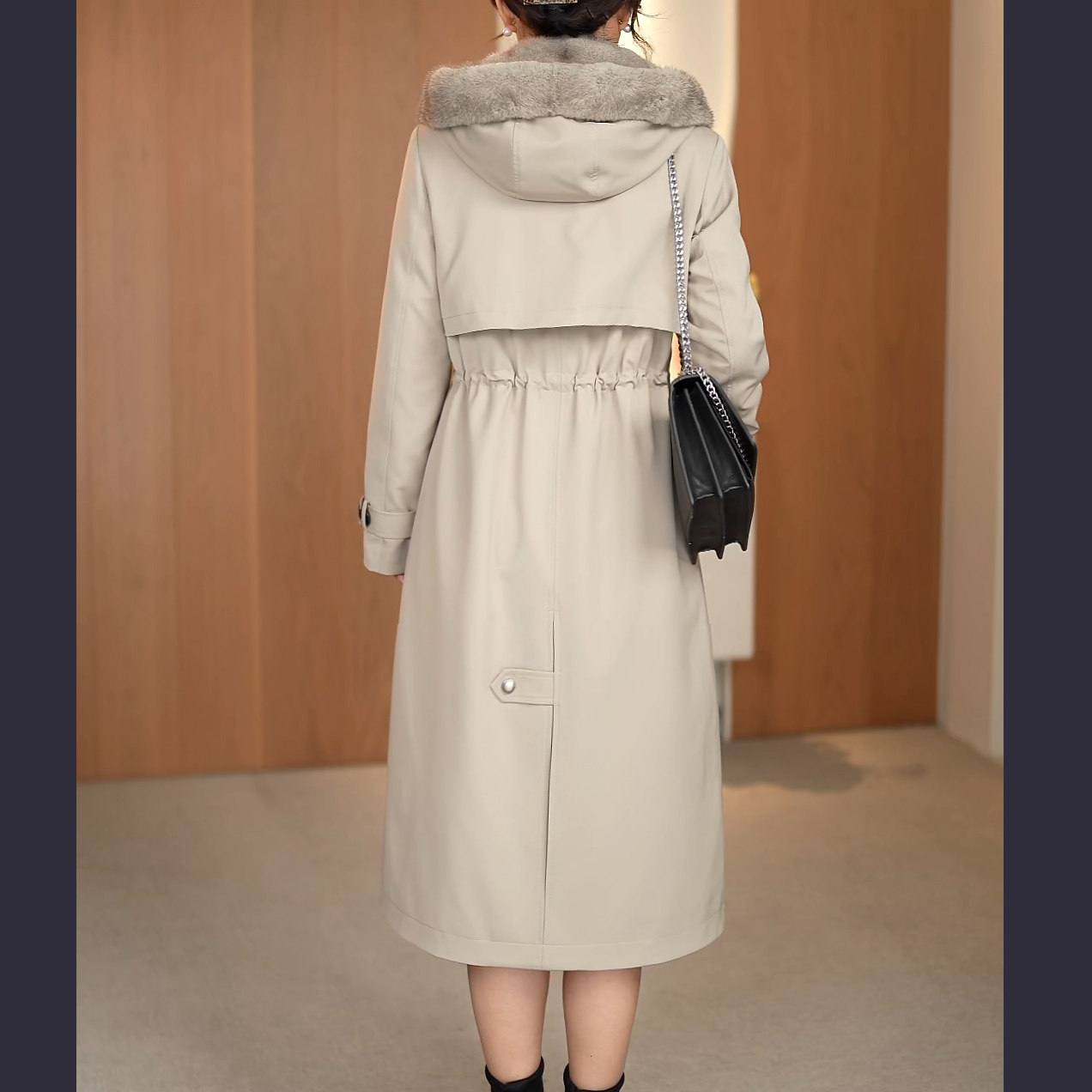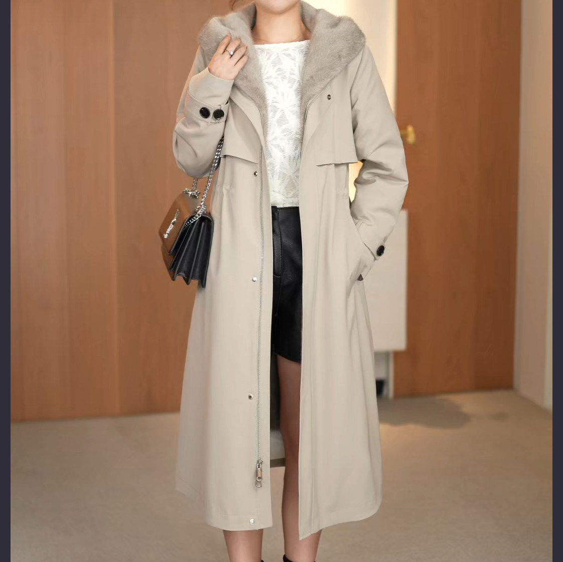 2025新款尼克服女中长整水貂内胆可拆卸海宁派克服女皮草大衣外套