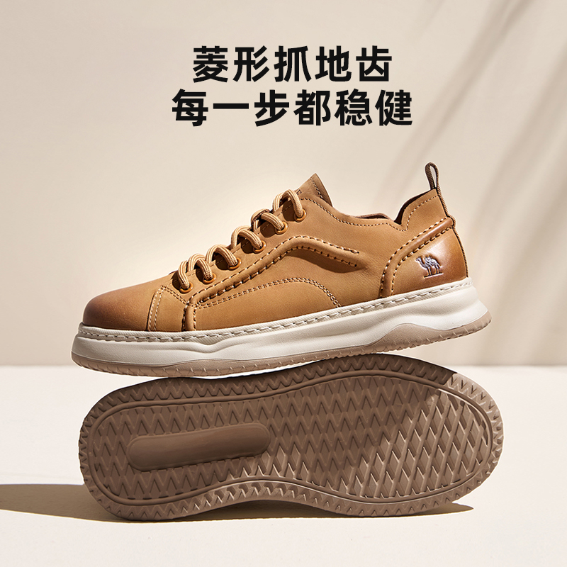 骆驼男鞋冬季新款牛皮革潮鞋舒适软底耐磨经典商务休闲复古板鞋