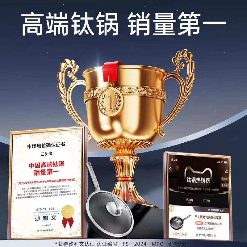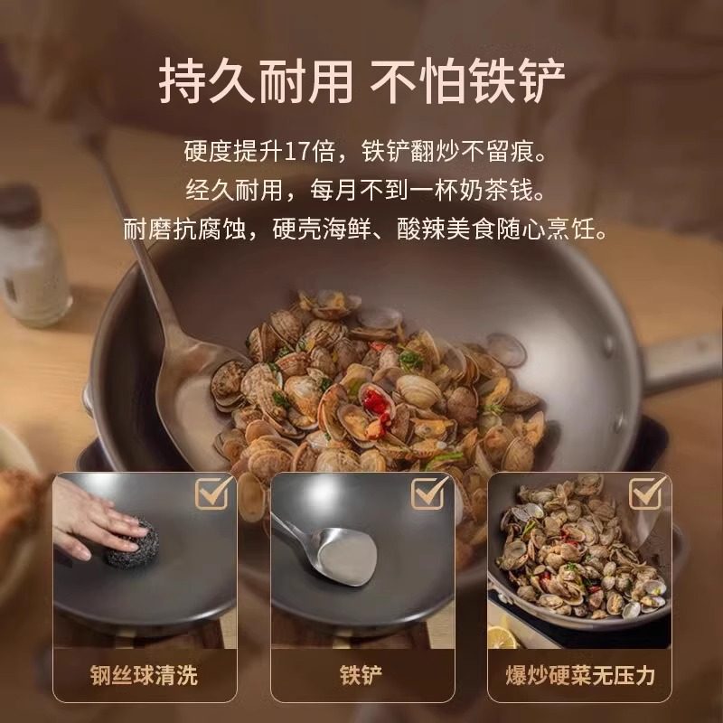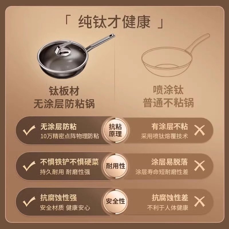 德国三头鹰无涂层钛锅不粘锅电磁炉燃气纯钛炒锅多功能家用炒菜锅