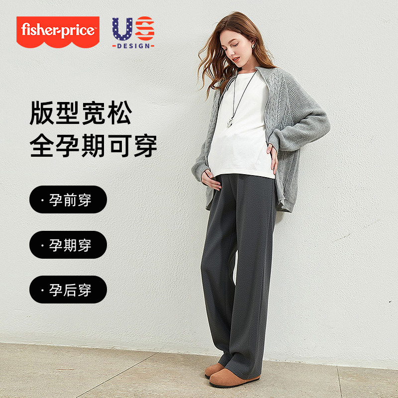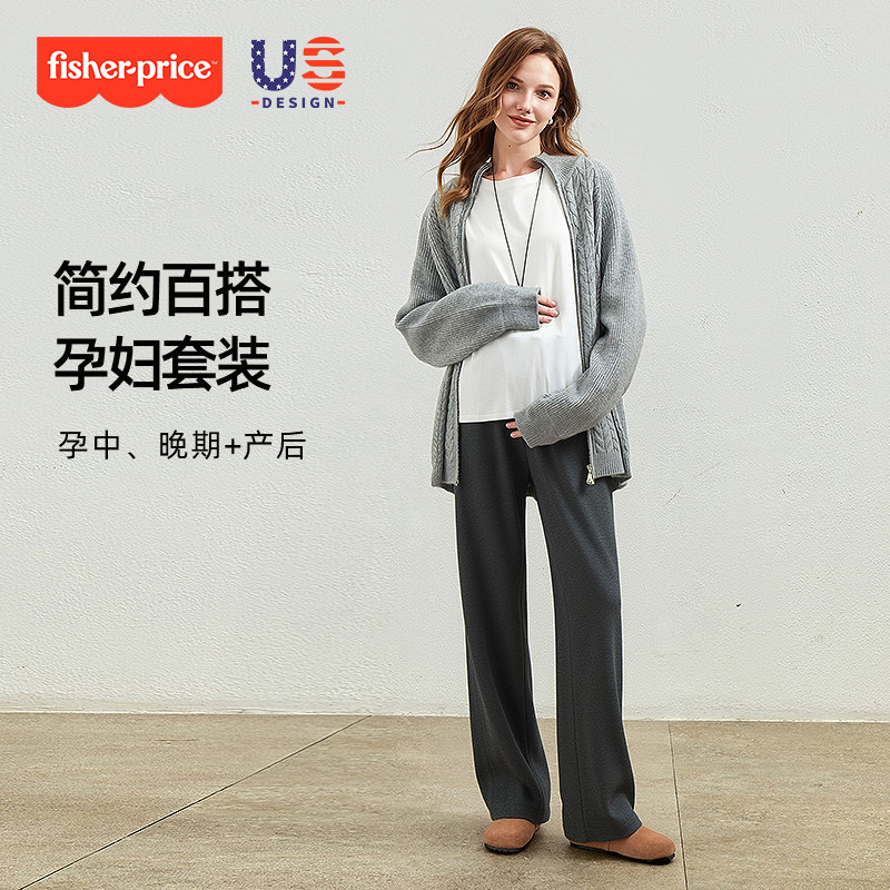 费雪孕妇套装2025秋冬毛衣开衫外套针织上衣女加绒羊毛阔腿裤冬装