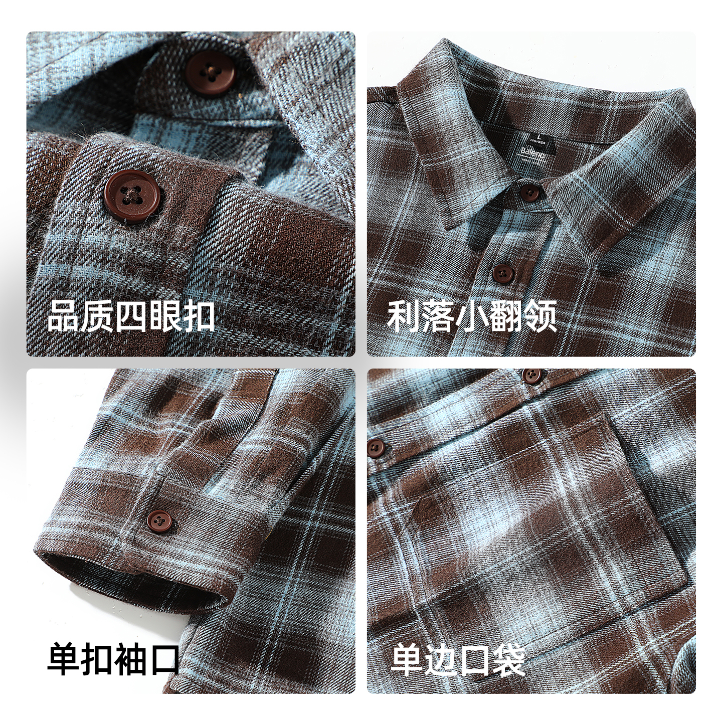 班尼路法兰绒衬衫男秋季新款美式复古男士藏青色磨绒格子衫外套LF