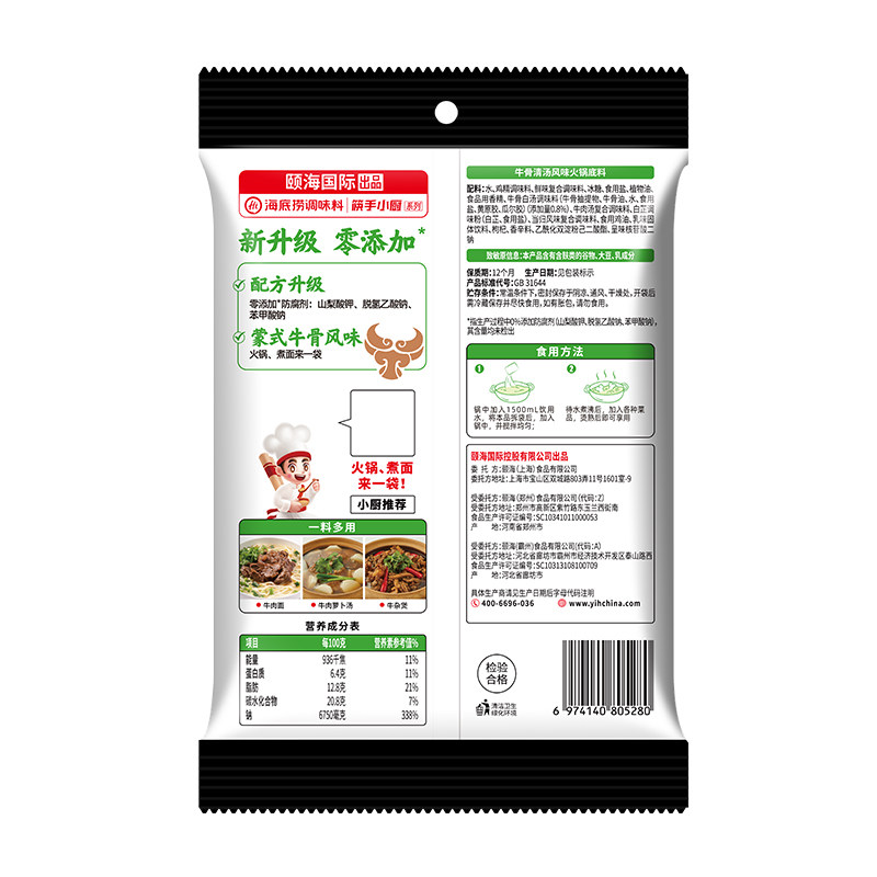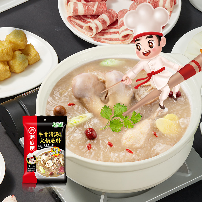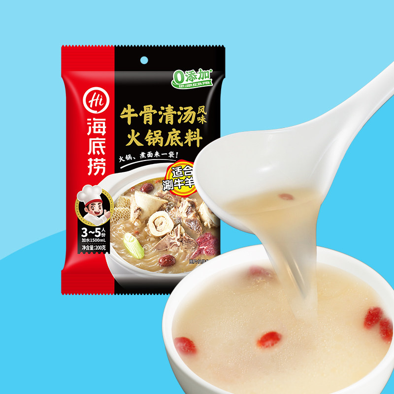 海底捞牛骨风味清汤火锅底料200g家用不辣汤涮羊肉煮面牛杂煲调料