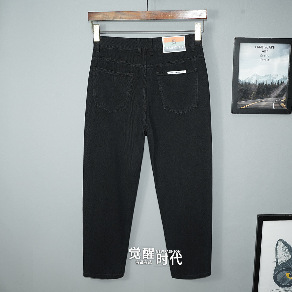 2025新款春秋季宽松九分牛仔裤男直筒潮流黑色休闲纯棉纯色无弹