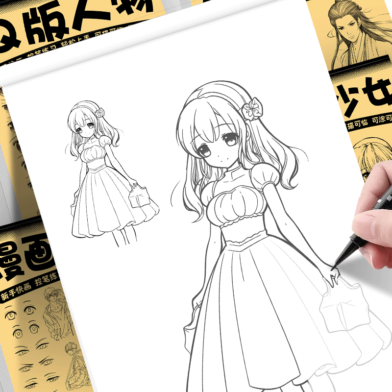 枪械武器坦克战车机甲勇士飞船战车线稿描摹本漫画美少女美少年Q版古风人物男孩女孩手绘控笔练习绘画本涂色本画本卡通画册玩具