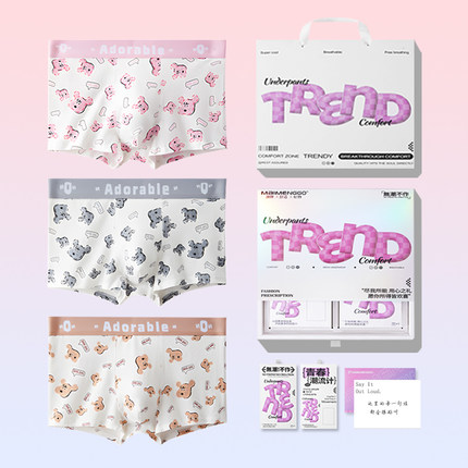 男士内裤纯棉抑菌透气卡通印花平角裤宽松中腰舒适男四角裤礼盒装