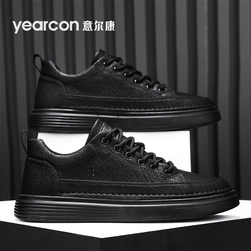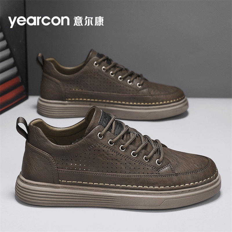 意尔康板鞋男鞋2026新款春秋夏季镂空闰月爸爸男士商务休闲皮鞋潮