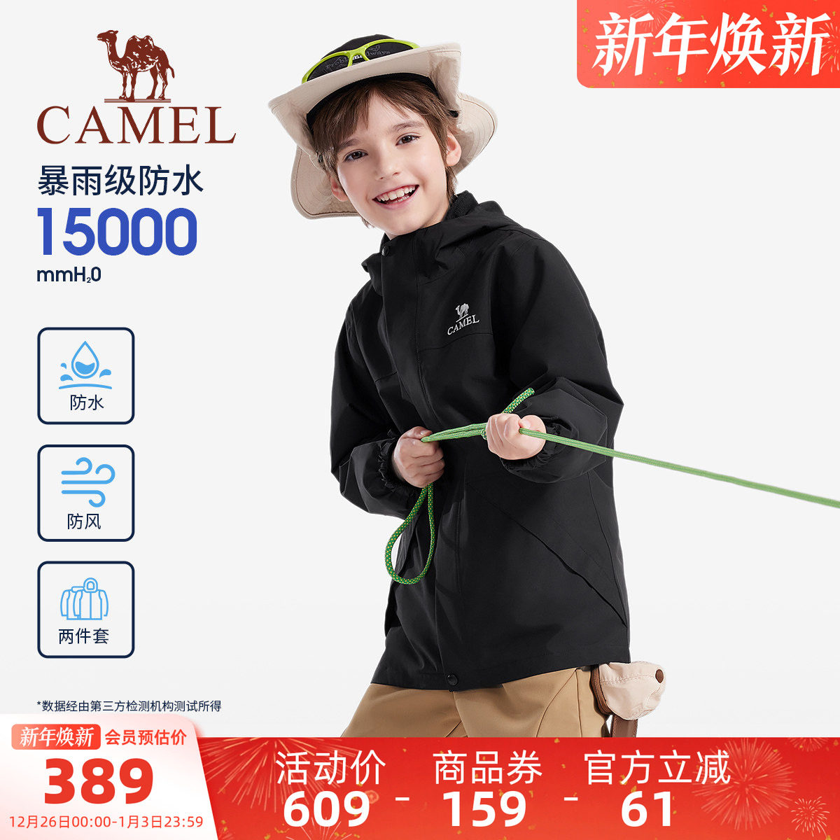 骆驼儿童冲锋衣三合一童装款户外防水登山服大童防风衣男女童外套