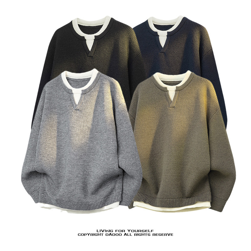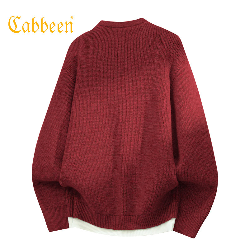 卡宾新年红色毛衣男冬季加绒2025新款秋冬加厚本命年假两件针织衫