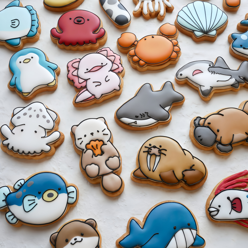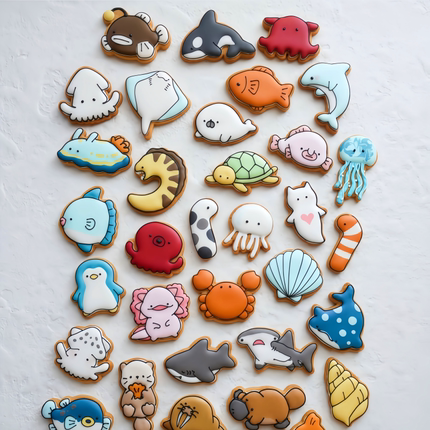 海洋生物卡通糖霜饼干模具美人鱼海豚海豹贝壳白鲸海螺曲奇印模