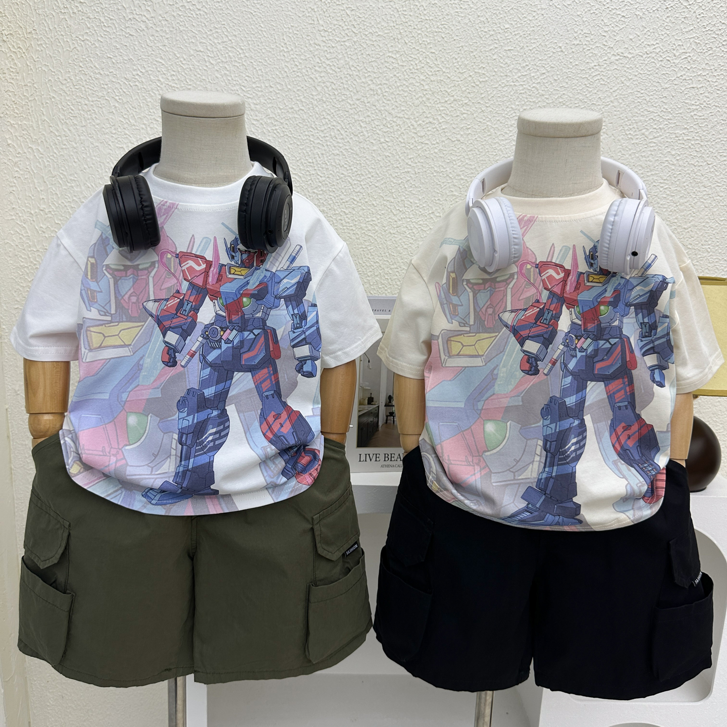 男童夏季短袖t恤2025新款儿童圆领卡通宽松半袖男孩帅气变形金刚T