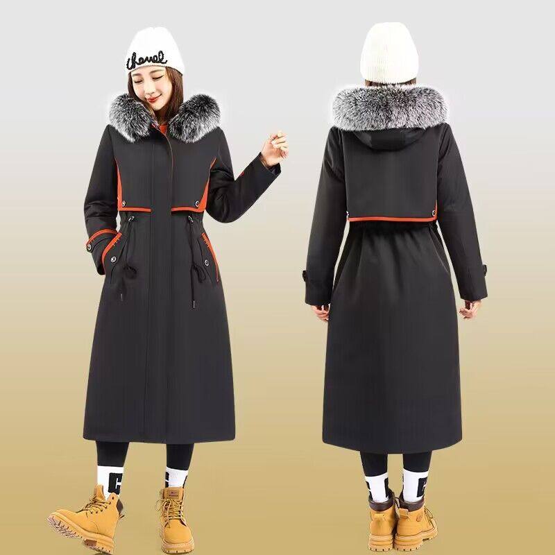 派克服女2025冬季可拆卸90鹅绒内胆狐狸毛领羽绒服皮草外套加长款