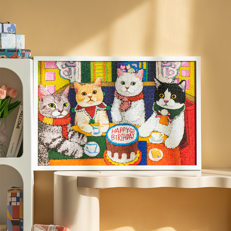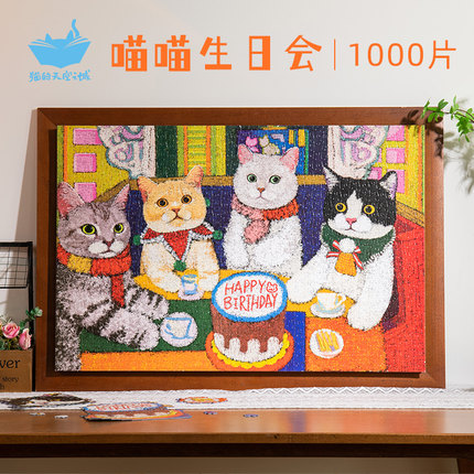 猫的天空之城拼图相框1000片喵喵生日会猫咪成人版生日快乐挂墙画