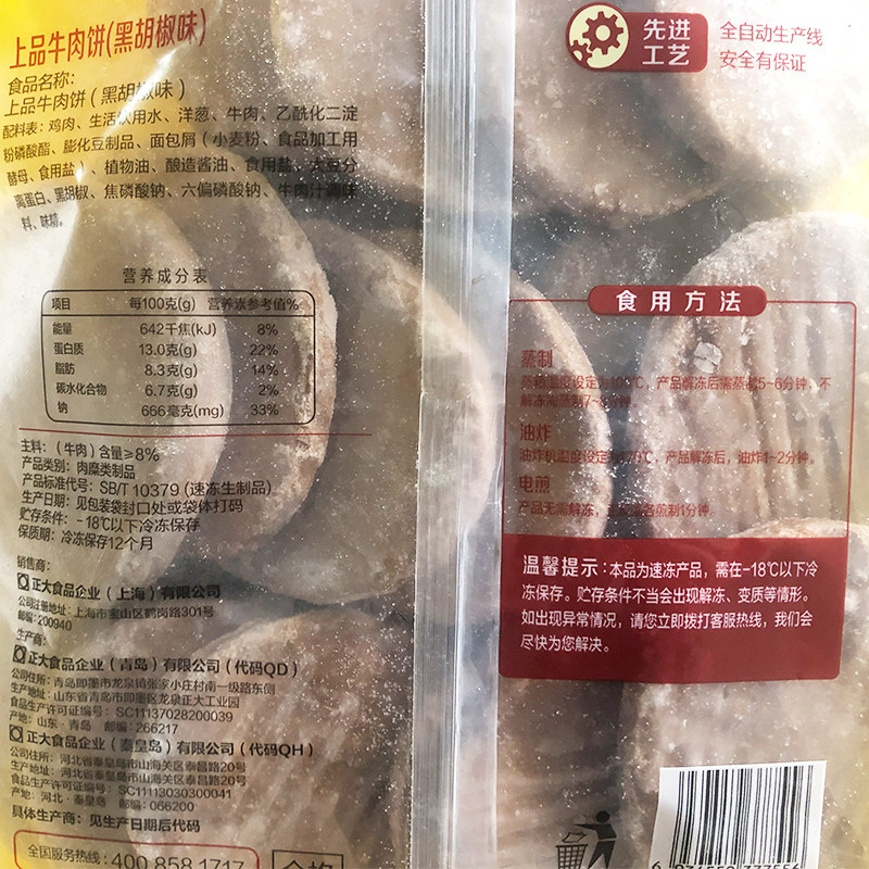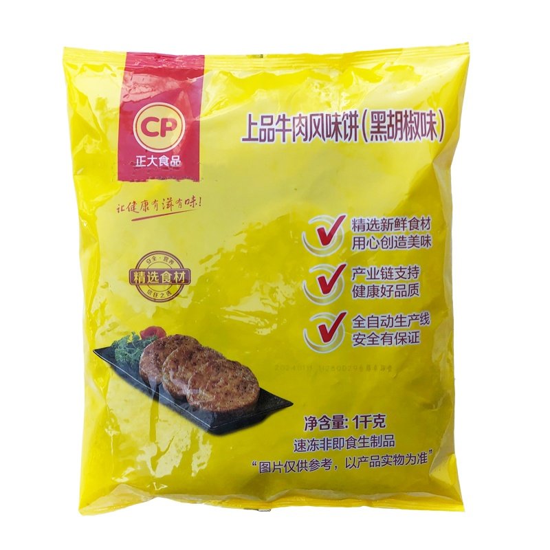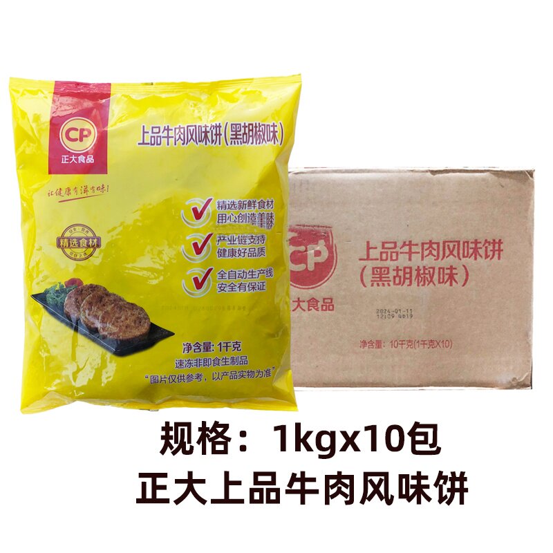 正大上品牛肉风味饼1kg*10包整箱商用汉堡黑椒牛肉堡原材料半成品