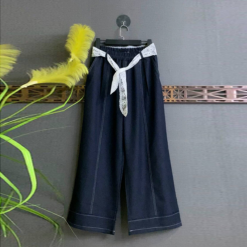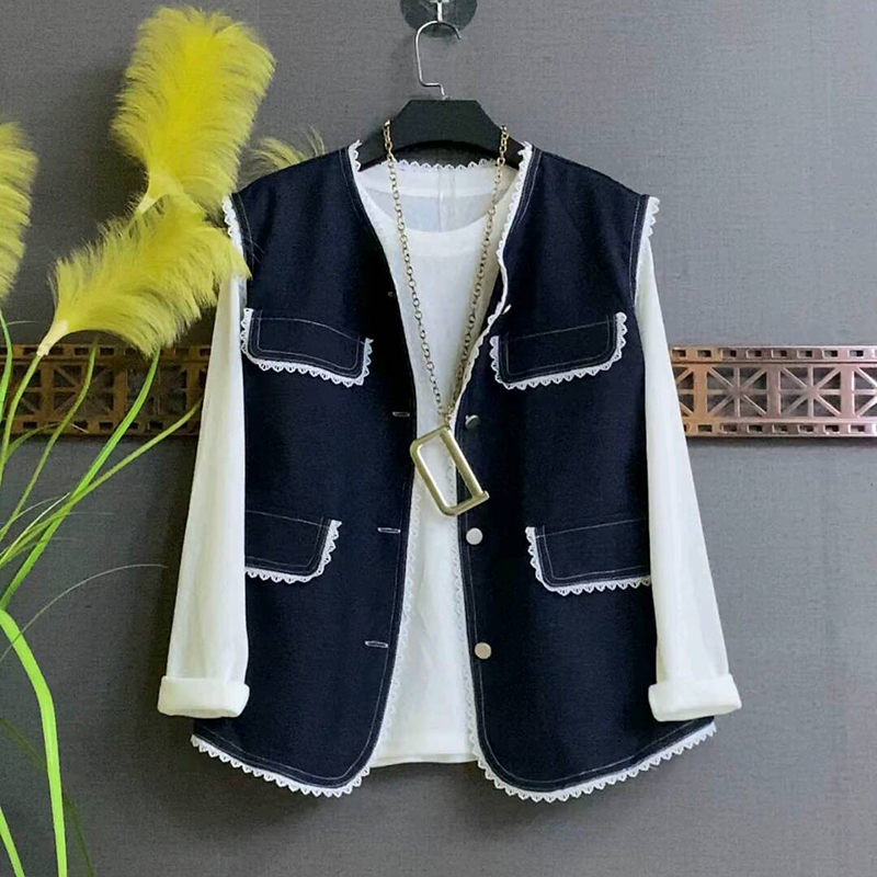 2025新款大码女装胖MM欧货蕾丝边马甲打底衫阔腿裤洋气显瘦三件套