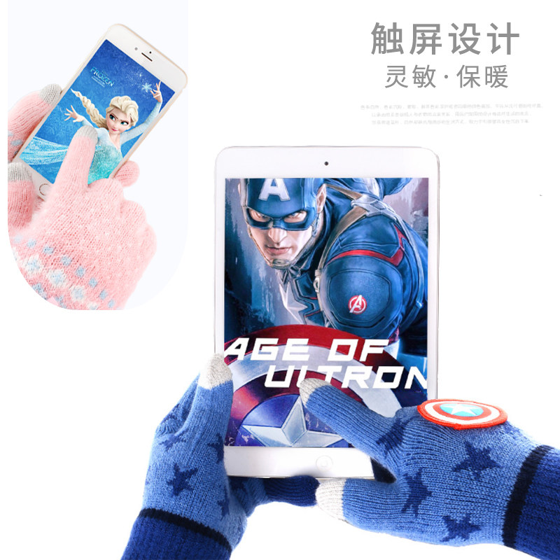 迪士尼抓绒儿童五指手套漫威正版