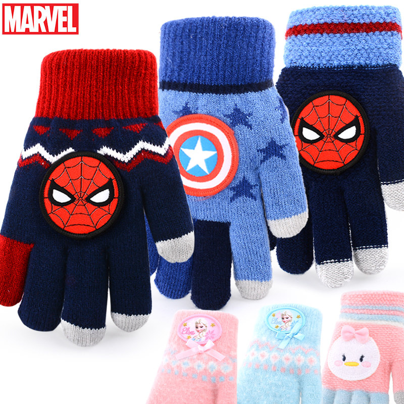 迪士尼儿童手套男冬季男孩蜘蛛侠小孩五指学生加厚宝宝加绒中小童