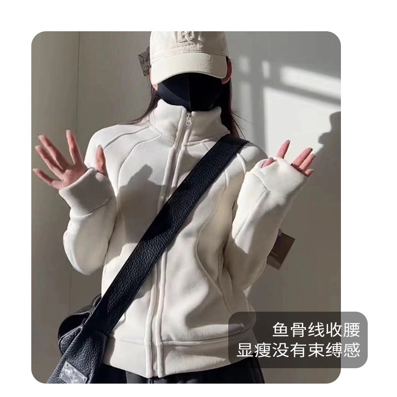 lulu摇粒绒外套内搭冲锋衣内胆修身2024新款短款瑜伽服卫衣春秋女