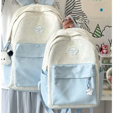 韩版小清新波点书包女百搭轻便旅游背包小初高学生上课研学双肩包
