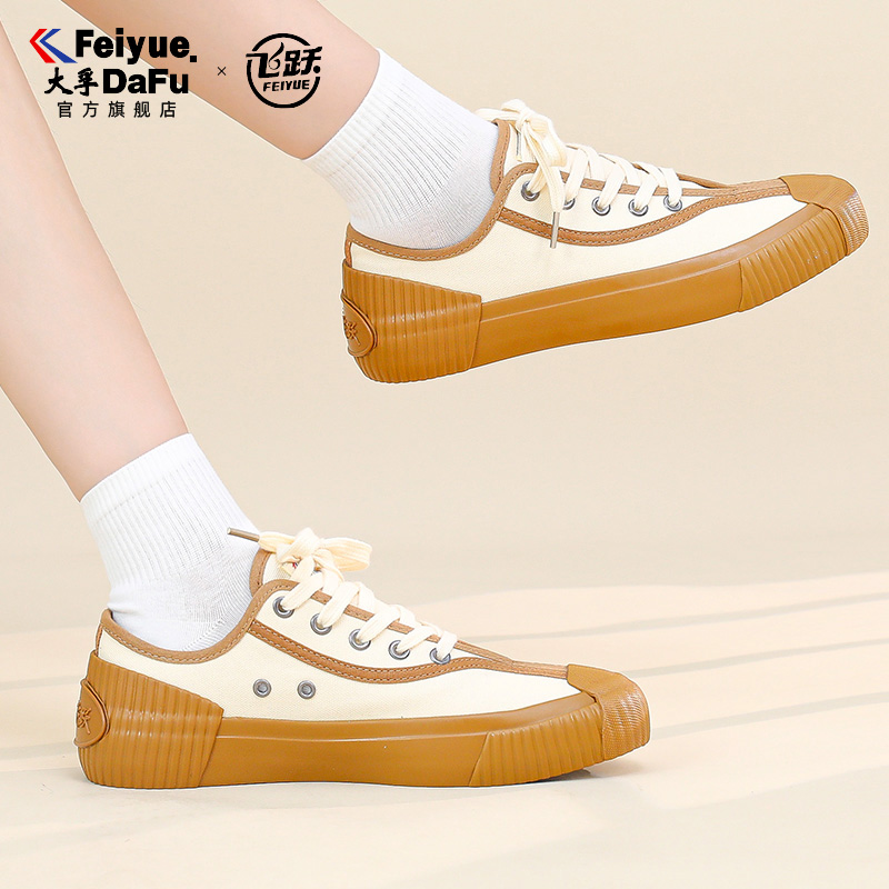 飞跃布鞋原宿鞋奶茶色女鞋大孚飞跃旗舰店休闲男鞋德训鞋帆布鞋