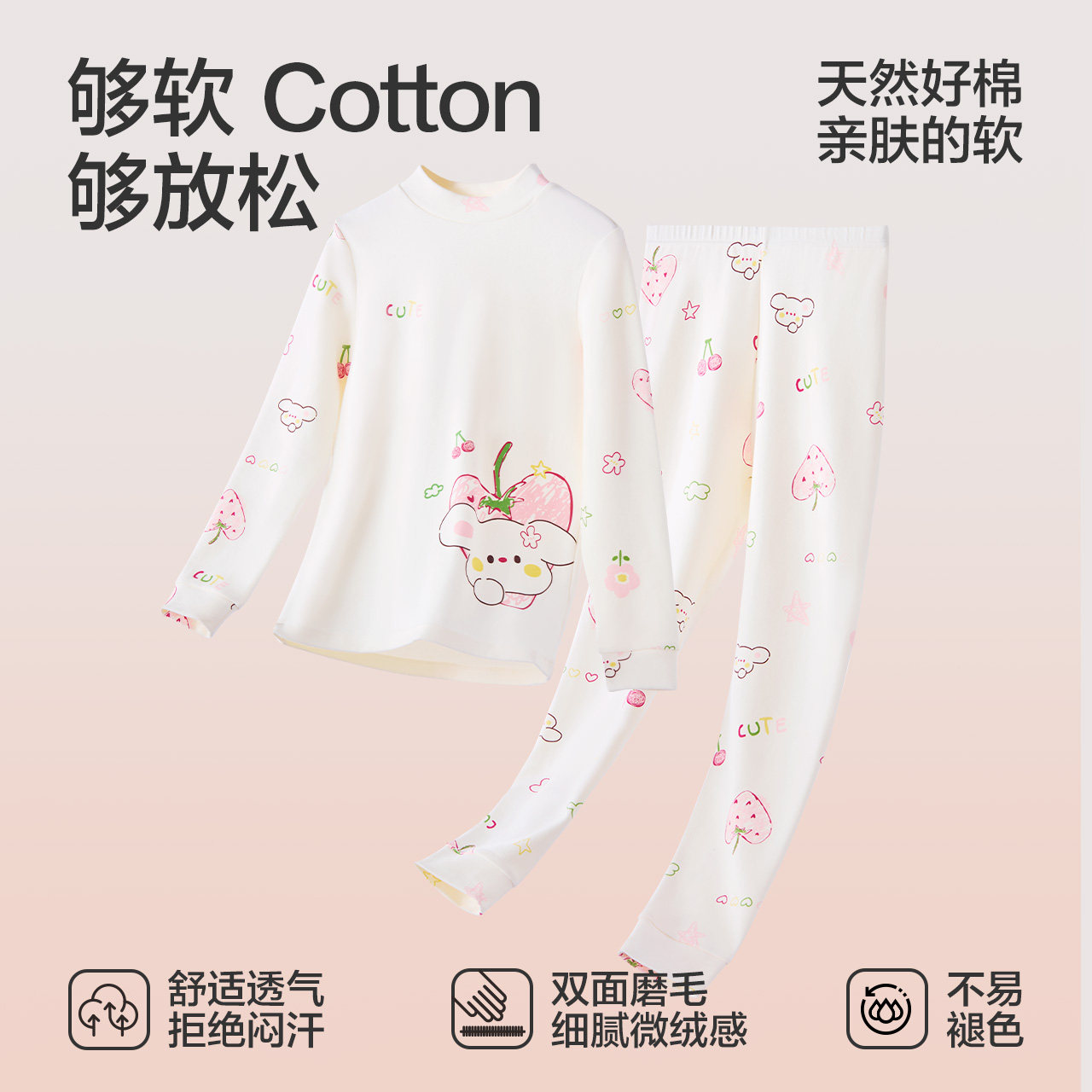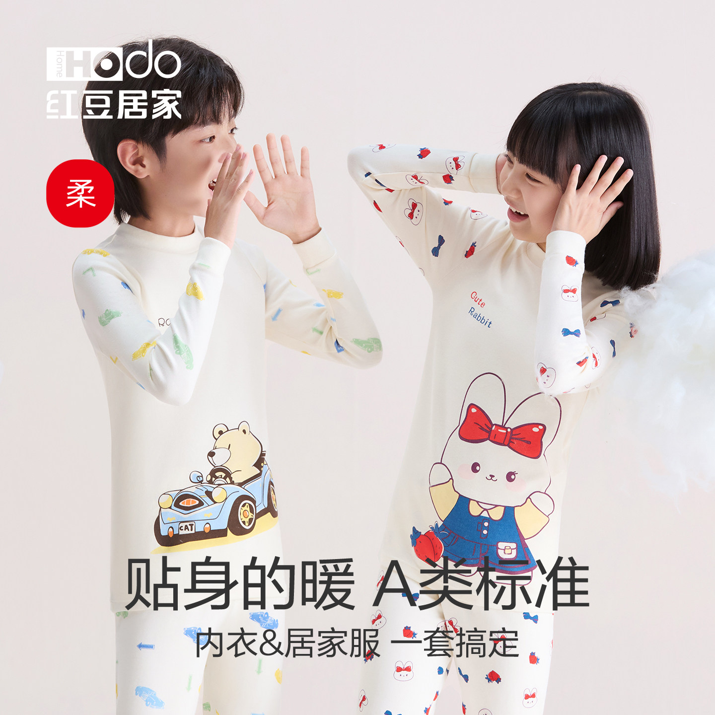 红豆绒儿童内衣套装纯棉秋衣秋裤