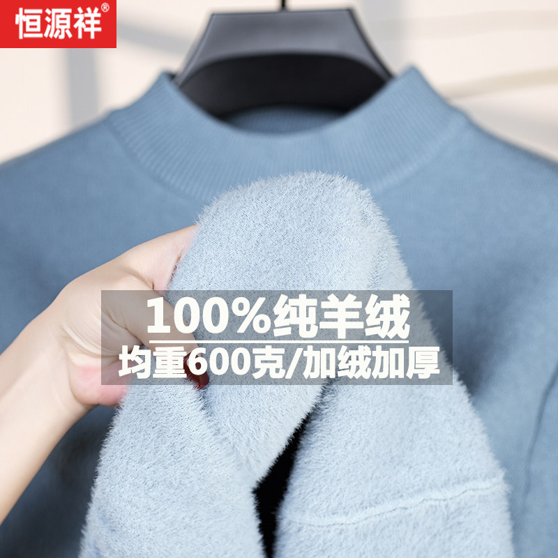 恒源祥新款100%纯羊绒衫加绒特加厚一体绒半高领打底羊毛衫毛衣男