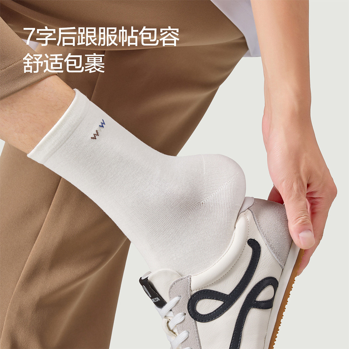 意尔康男袜运动休闲长筒袜透气春秋男款无骨高筒袜子男生白色