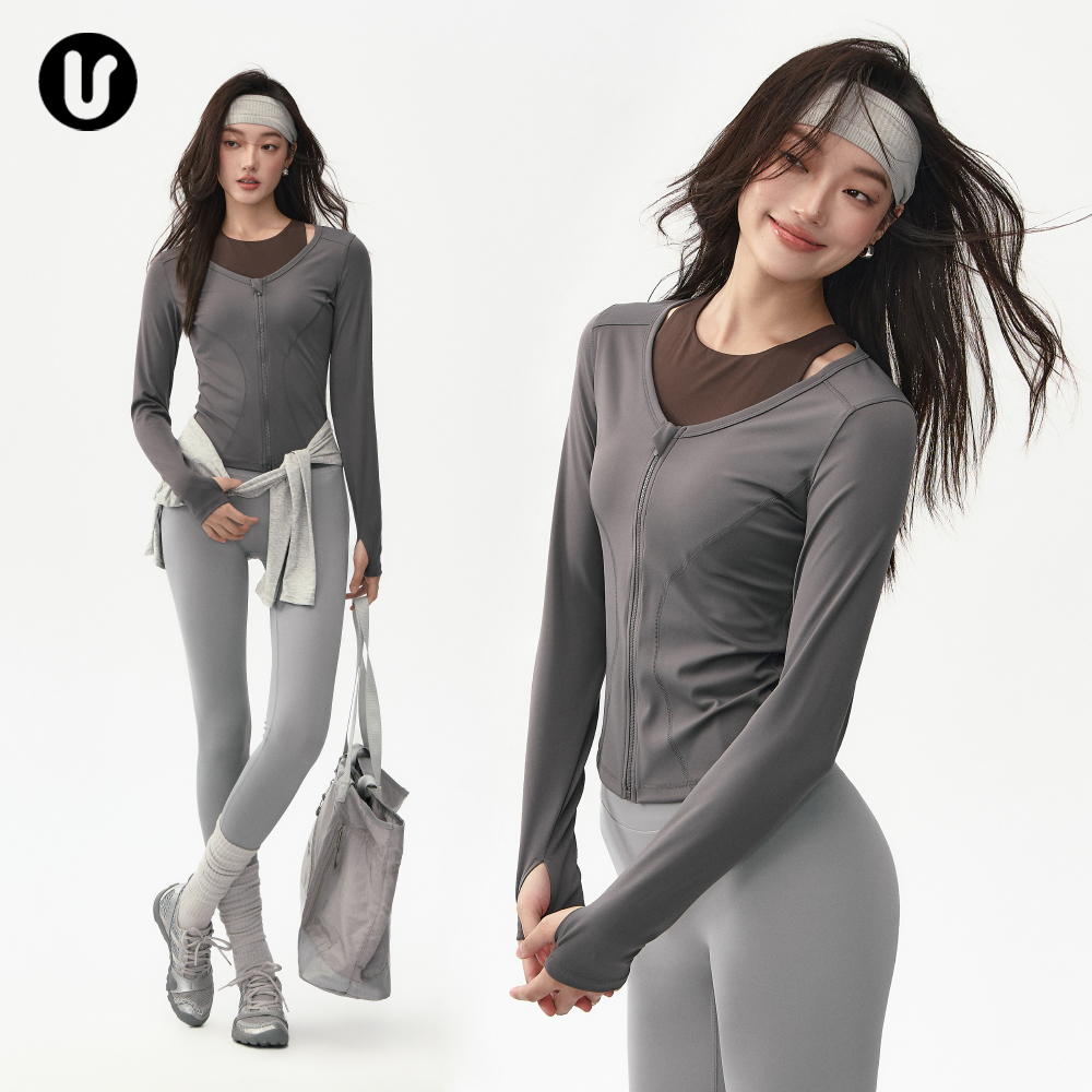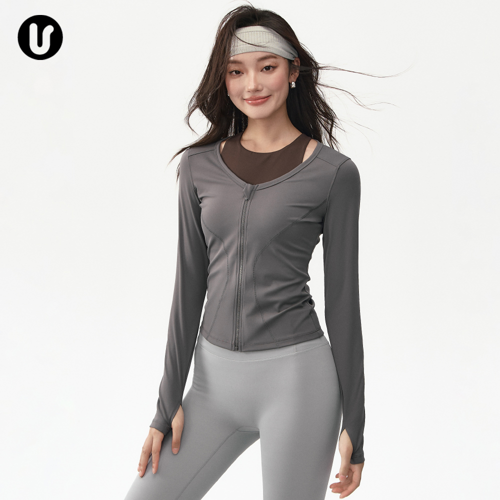 运动上衣女秋新款修身普拉提训练服瑜伽外套户外跑步骑行健身长袖