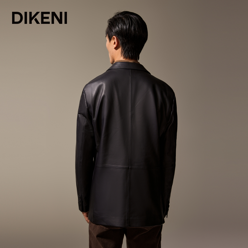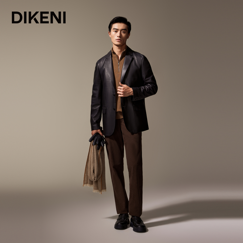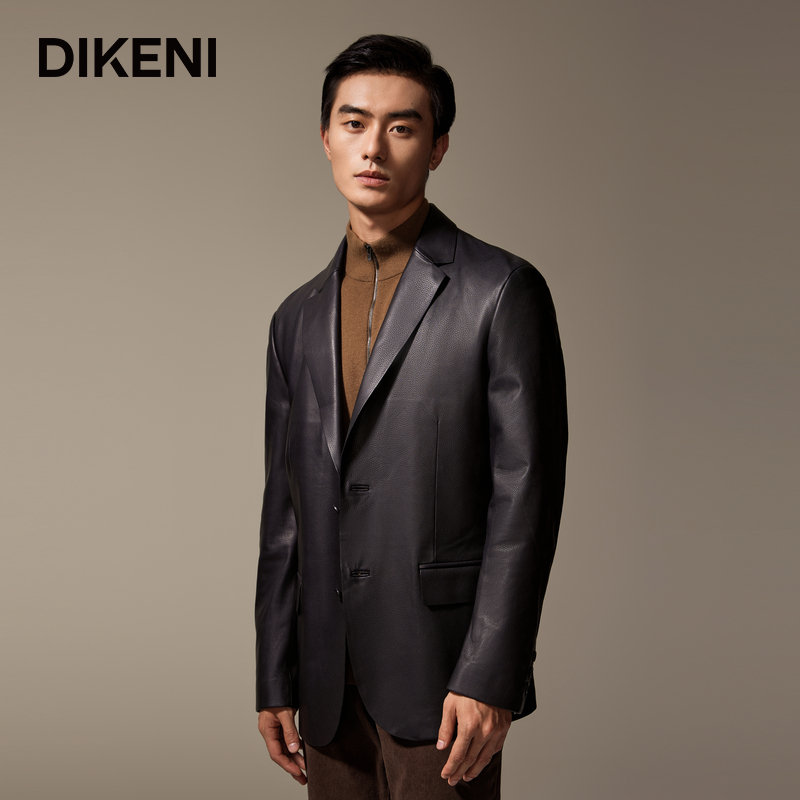 迪柯尼男士简约高级西装领皮衣