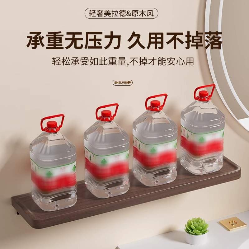 卫生间架子置物架洗漱台壁挂免打孔浴室洗手台收纳架实木一字隔板