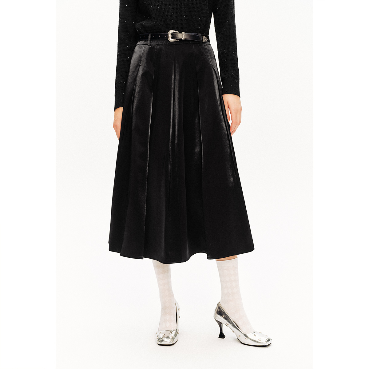 PSALTER诗篇千金风复古缎面学院百搭A字褶蓬蓬裙半身裙冬款