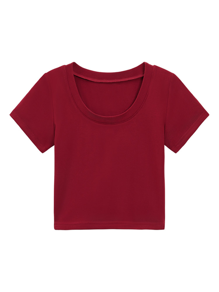 多巴胺红色甜辣妹正肩短袖T恤女短款纯欲风性感夏季紧身露脐上衣