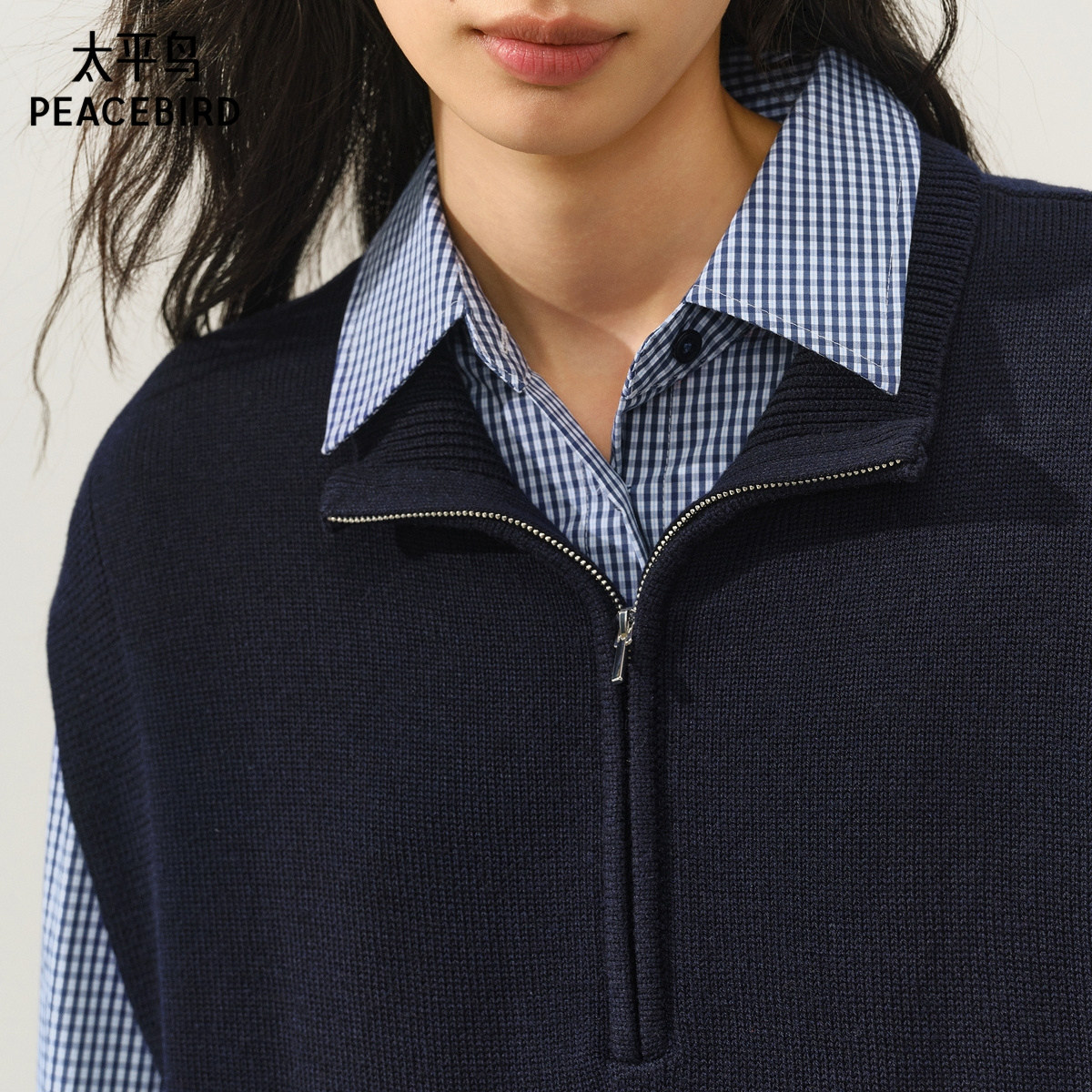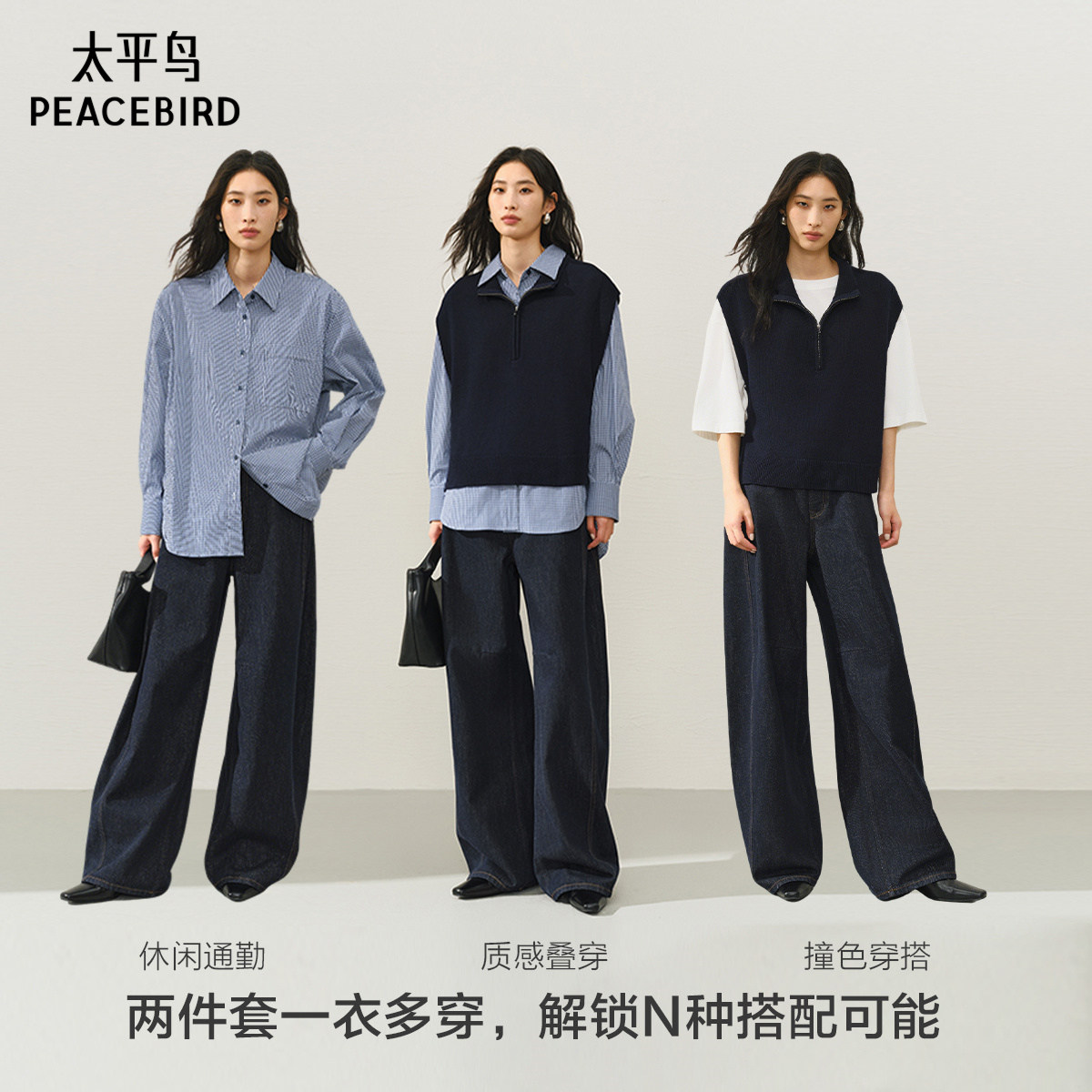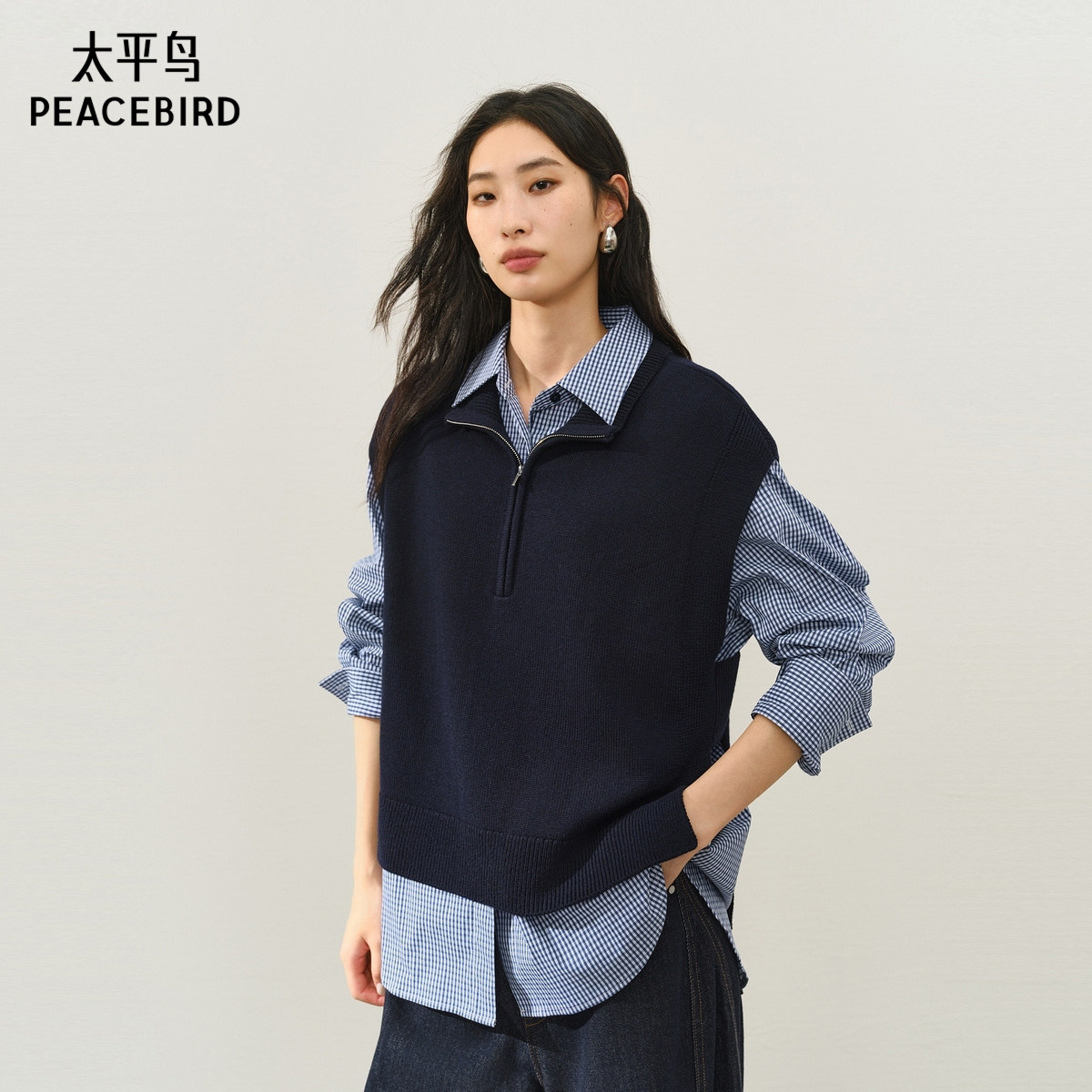 【商场同款】太平鸟新款高智通勤针织背心格纹衬衫套装A1CAF411G