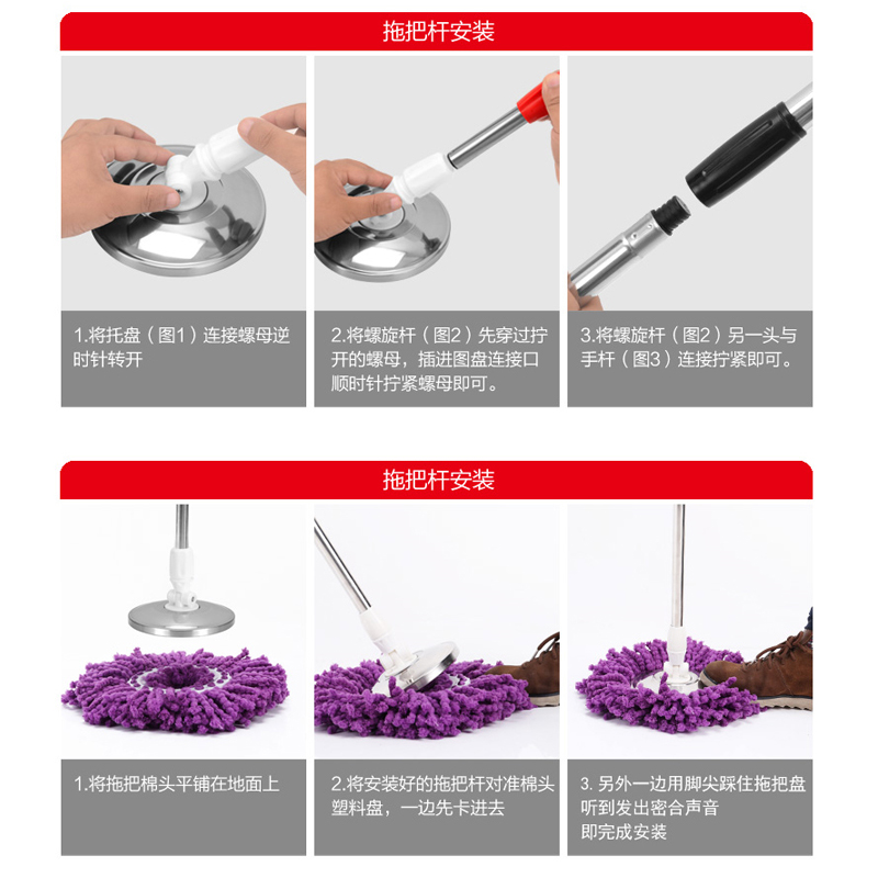 佰宁加粗通用旋转手压自动拖把杆
