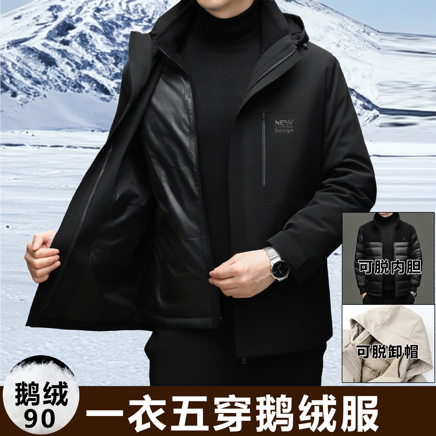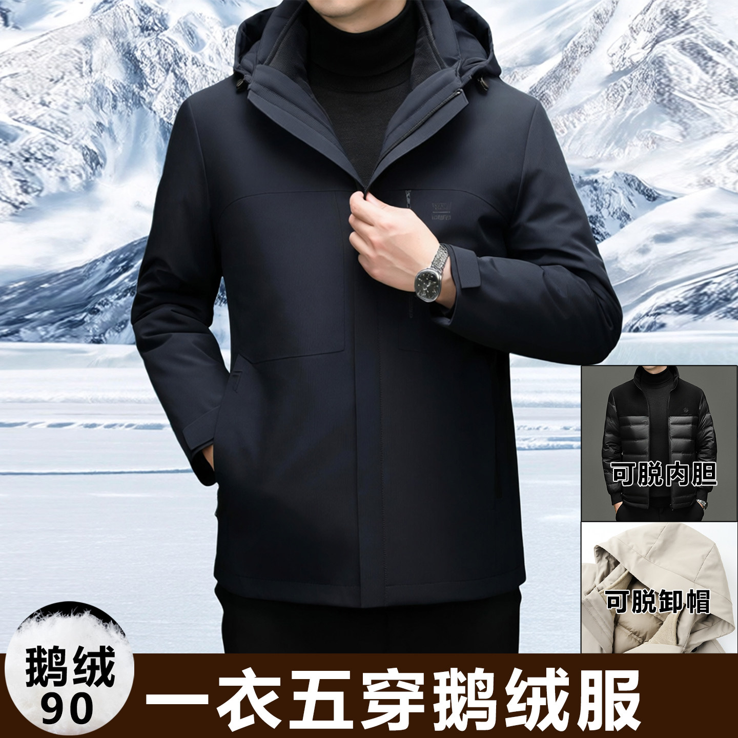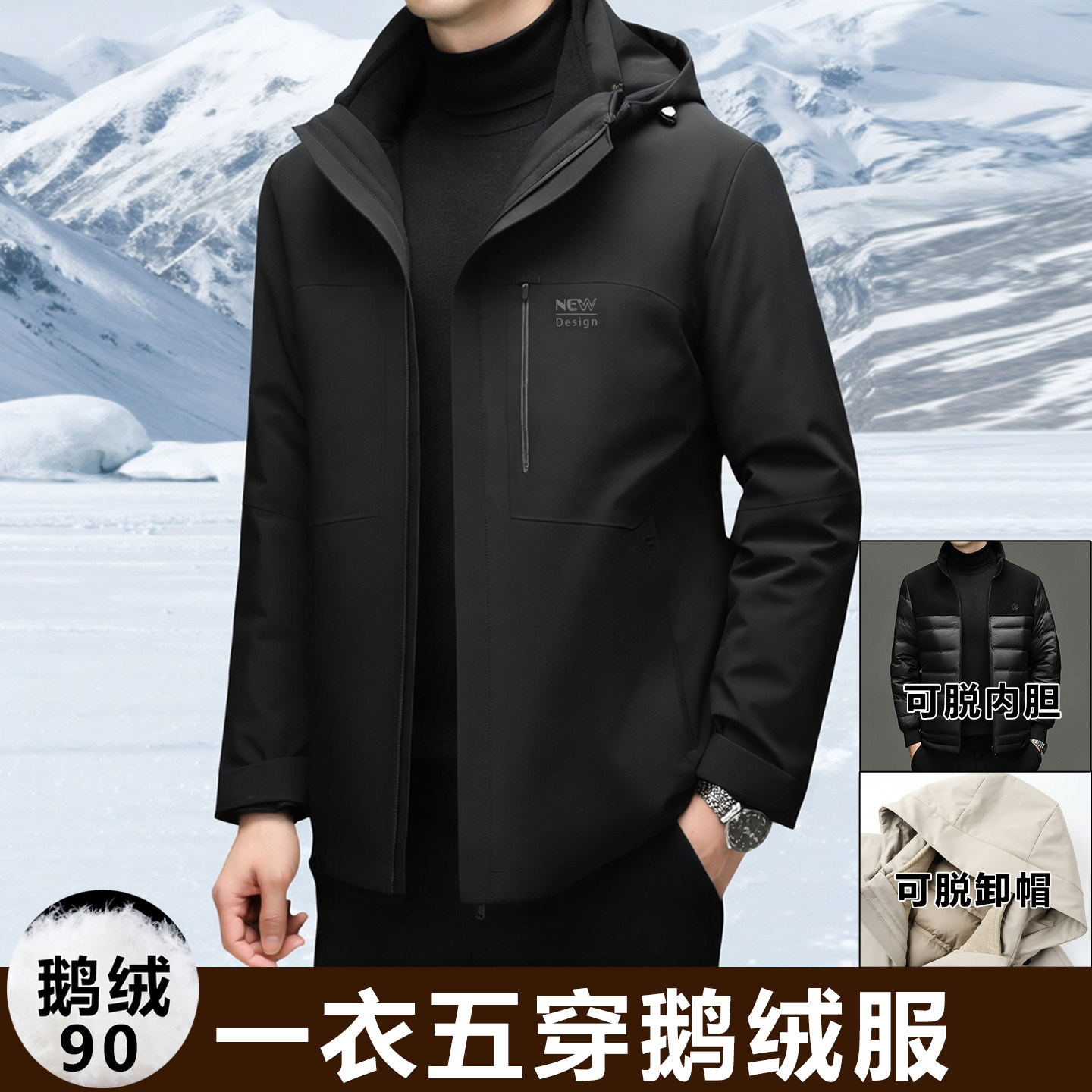 防寒羽绒服男短款连帽可拆卸90绒子鹅绒内胆老钱风冲锋衣加厚外套