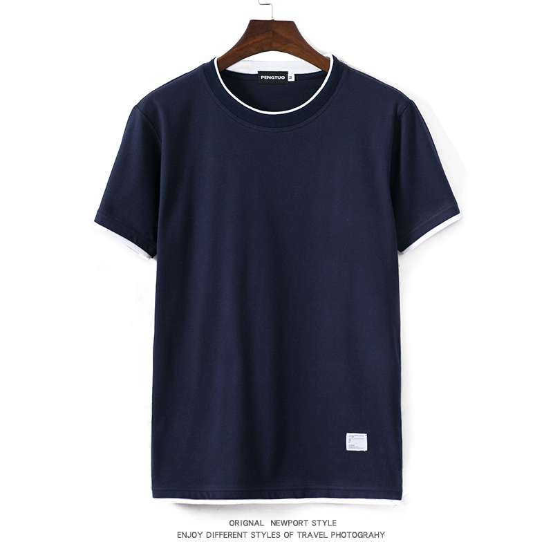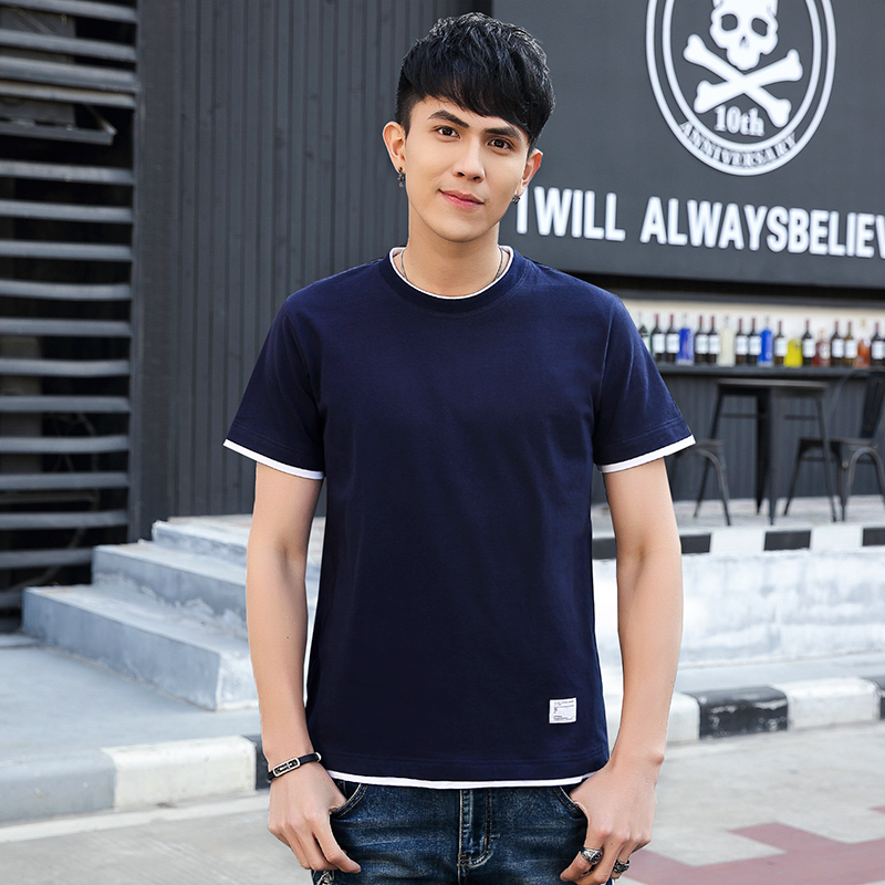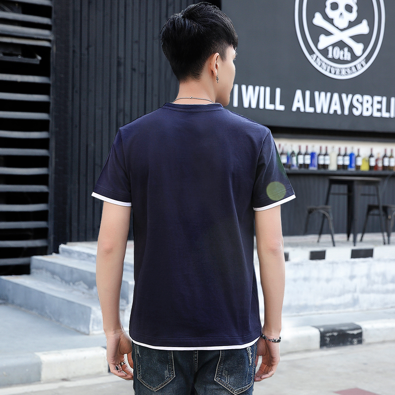 潮牌短袖港风男士假两件拼接t恤