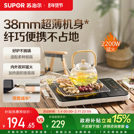 苏泊尔电磁炉高颜值轻薄家用大火力电陶炉一体智能多功能烹饪机