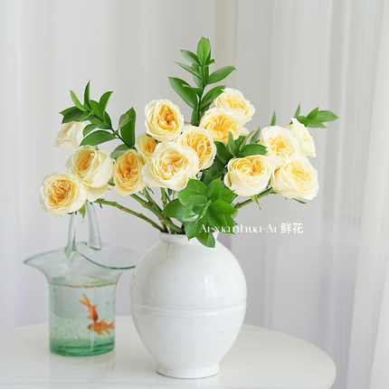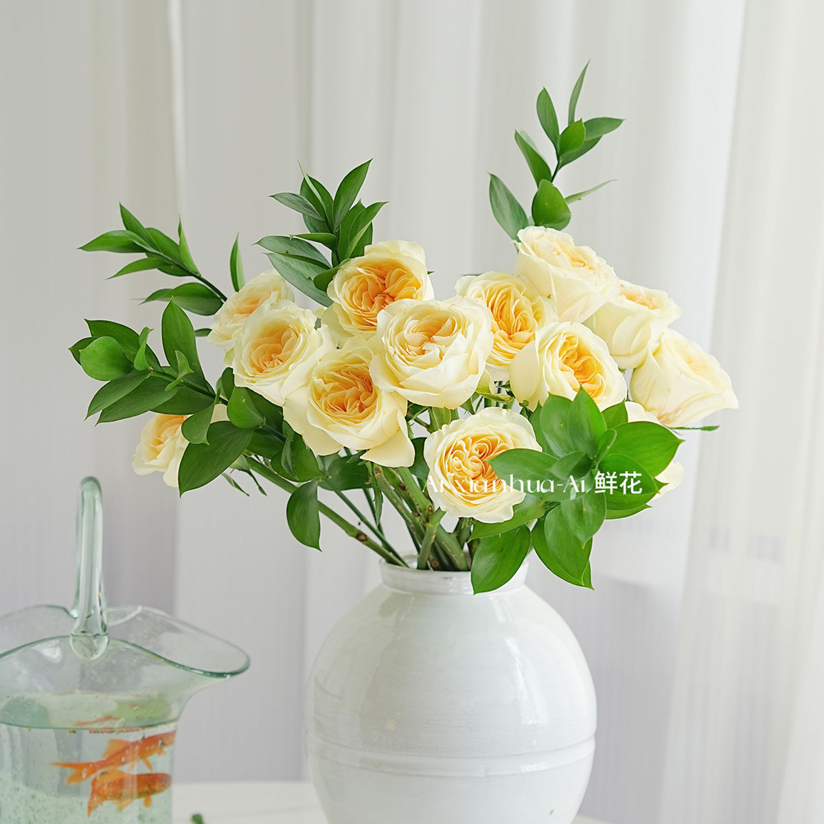 渐变双色高级奥斯汀花型奶油花园玫瑰鲜花母亲节情人节送花插花水