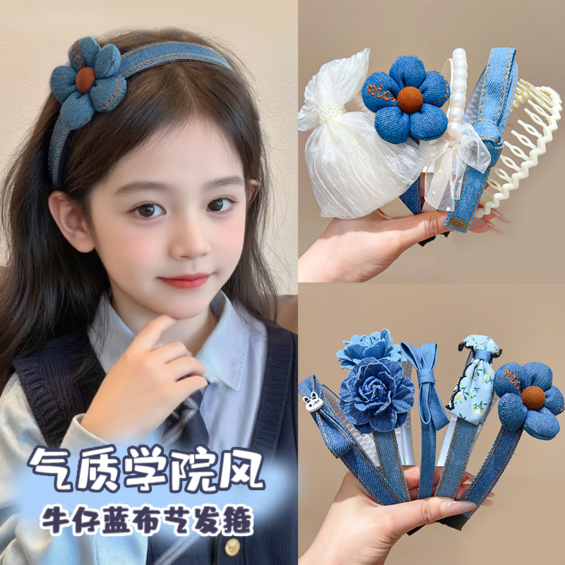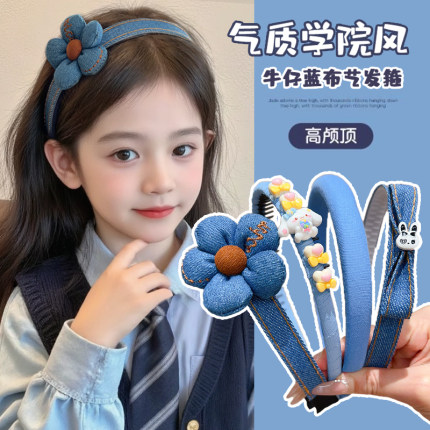 儿童学院风发箍气质牛仔蓝小女孩不勒头发卡洗脸防滑发捆女童头箍