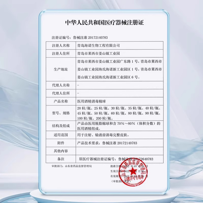 海氏海诺医用75%酒精棉球消毒液家用皮肤伤口杀菌棉片棉花球